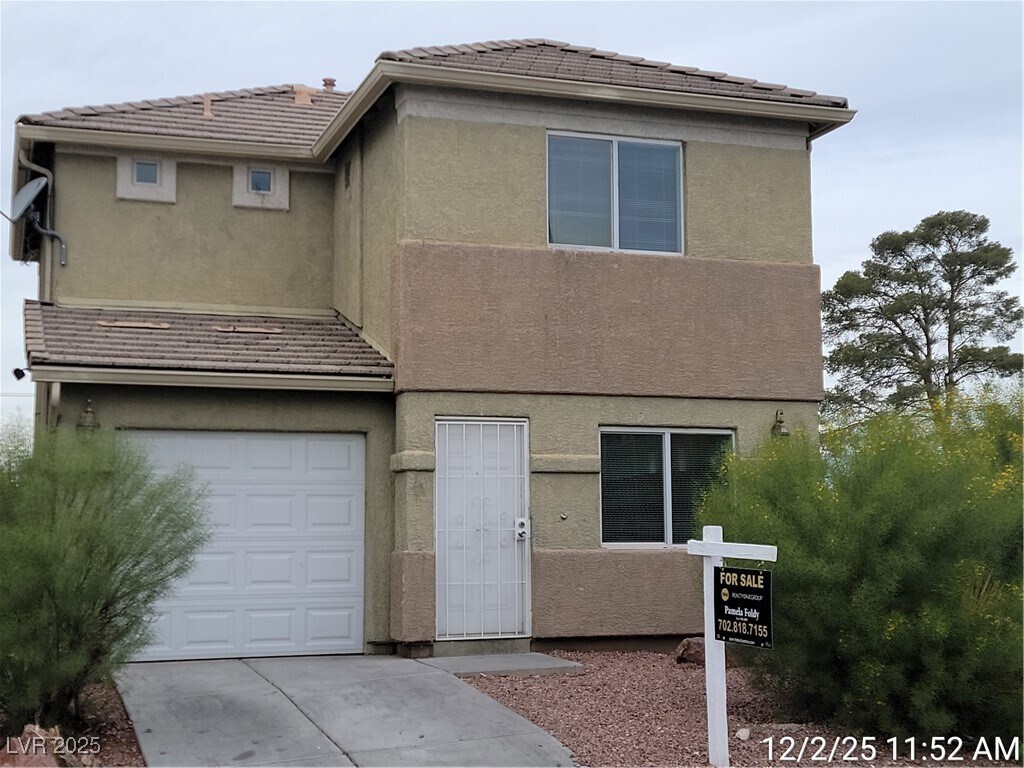 Ideally located in the Northeast community just minutes from Nellis AFB, this inviting home offers an open, airy layout perfect for everyday living. The kitchen features granite countertops, black appliances, and a cozy breakfast nook. A convenient half bath downstairs is great for guests. Upstairs, the primary bedroom includes a walk-in closet and tub/shower combo, while the secondary rooms are generously sized—one even has private access to the second bath. Enjoy the ease of an attached one-car garage and a low-maintenance backyard. Owner will consider one small pet. Base rent $1,413 + $37 RBP.