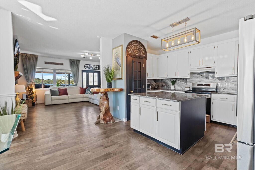 Discover the Ultimate in Island Luxury Living! Located in the gated waterfront community of Tensaw Island,this stunning property captures breathtaking water views from nearly every window. The front of the home showcases magnificent sunsets over the Tensaw River,while the back overlooks serene sunrises across Hurricane Bayou. Enjoy peaceful mornings on the screened porch or evenings by the water just steps from your private dock with boat lift. Inside,the kitchen has been completely updated with stainless-steel appliances,modern finishes,and an open flow to the spacious living area featuring a cozy fireplace and panoramic views. Upstairs includes new luxury vinyl plank flooring,and sellers are providing new flooring and install allowance for the downstairs,ready for your personal touch. The main level offers the updated kitchen with island seating,a dining area,hobby or study space,and a convenient half bath/laundry combo. The primary suite includes a charming sitting nook with beautiful views,large closets,and a full bath. Upstairs provides two more bedrooms and a versatile 10x13 flex space ideal for guests or an office. Step outside and experience true river living; drop your nets for crabs right off your dock,launch your boat to explore open water,or unwind as the sun melts into the horizon. The community includes sewer,garbage service,gated entry,bridge access,and a nearby boat ramp on the island for added convenience. Just minutes by boat from Gravine Island,this property blends the tranquility of island life with the comfort of gated living,creating one of Baldwin County's most captivating waterfront opportunities! Pet Deposit is negotiable. 12 month lease.