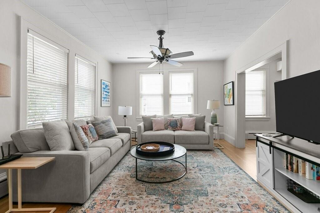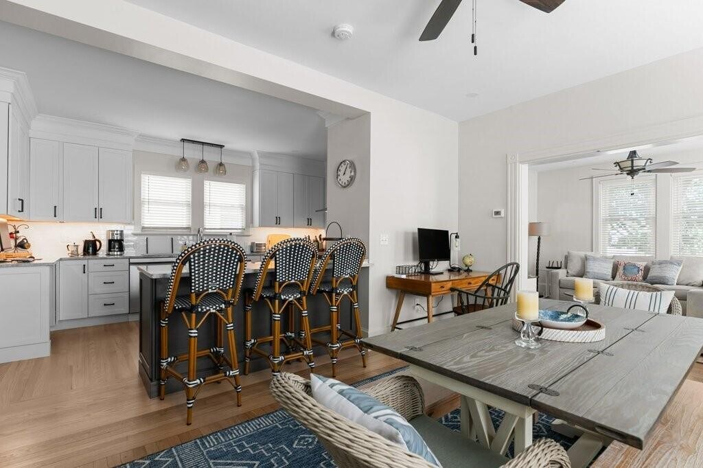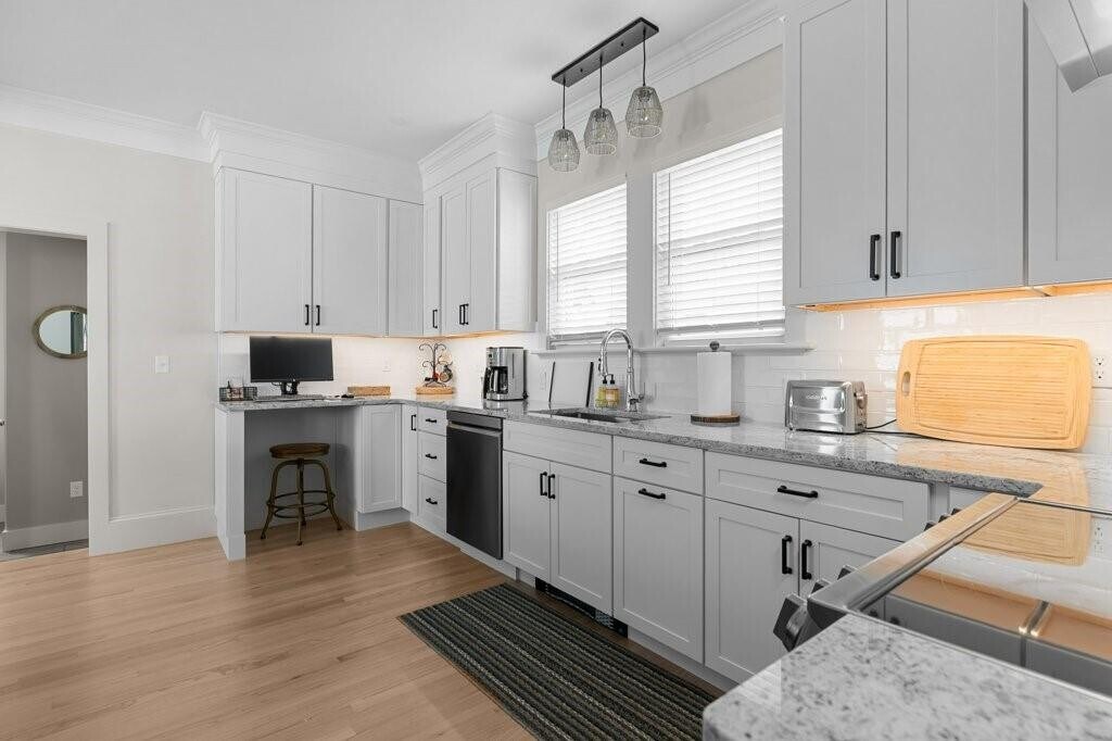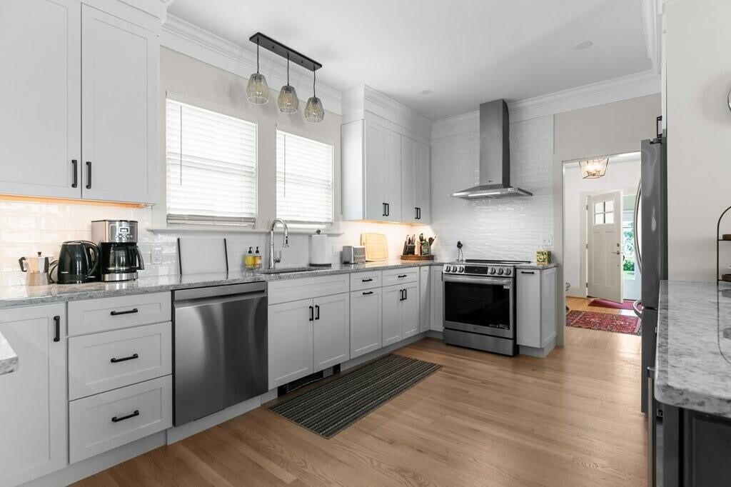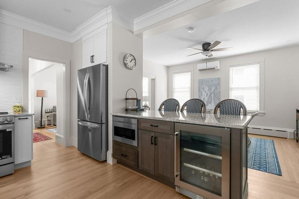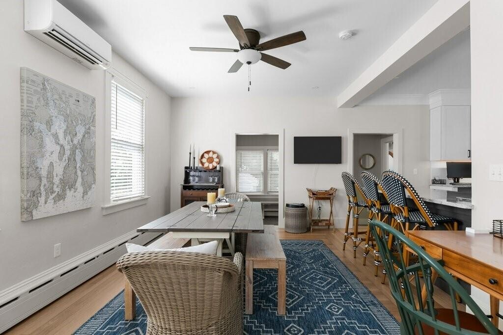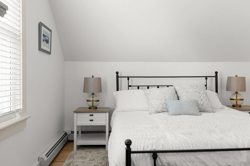 Welcome to this tastefully renovated,lightfilled 3-bedroom,2.5-bath home located in a quiet,desirable neighborhood close to Broadway and a short bike ride to the beach and downtown Newport. Featuring hardwood floors throughout,the open-concept layout offers a seamless flow from the bright dining area to the high-end modern kitchen,complete with sleek finishes and top-quality appliances. The furnishings are modern and comfortable. Master bedroom with ensuite bath,2 more bedrooms and the second bath are located on the second floor. The first floor has a well placed minisplit and the second floor has central airconditioning. Additional conveniences include a detached garage and a deck overlooking the yard. Minimalistic in design yet rich in comfort,this home provides a tranquil retreat while keeping you close to everything you need. Sorry,no smoking,a dog may be considered on a case by case basis.