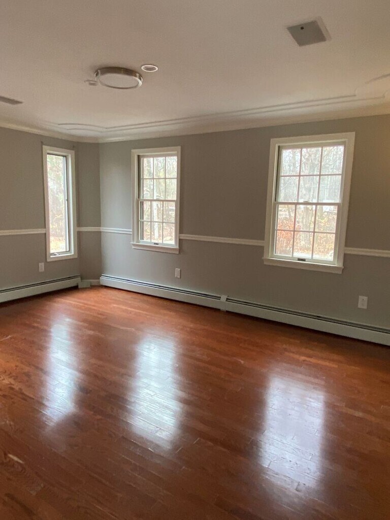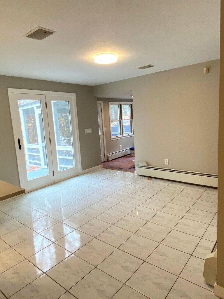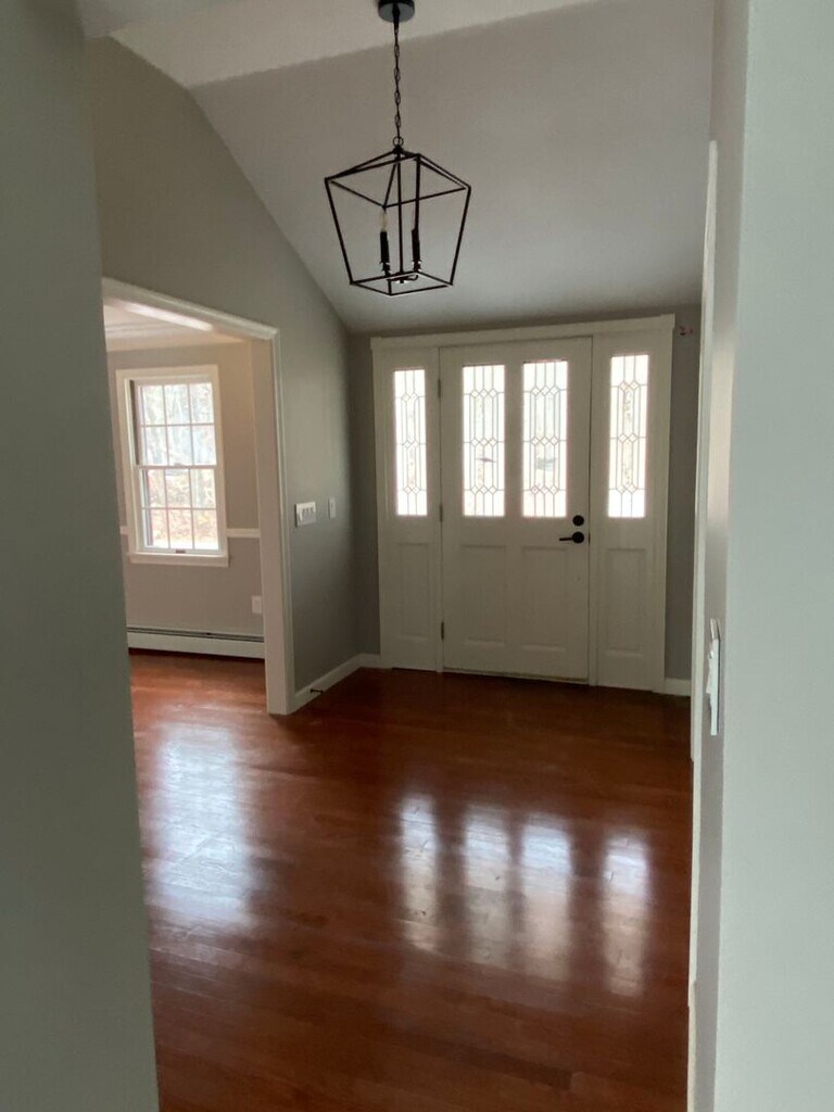Located on a secluded quiet lot, this extended ranch-style home features two beds, two full baths and almost 2,000 sq. feet of spotless living space • The entire property has just been completely updated with fresh paint, new flooring and spacious, wide-open, bright living area throughout! • Gorgeous, eat-in kitchen with brand-new stainless-steel appliances, new cabinets, propane cooking, quartz counter tops and center island/sitting area • Bright and sunny family room with hardwood floors, vaulted ceilings, over-sized bay window and great natural lighting • Separate dining area, also with hardwood flooring • Large beds with new flooring, double closets and comfortable ceiling fans • Two full baths, each with ceramic tile and new vanity/sinks and all new fixtures • Huge, dry, unfinished basement with washer/dryer hook-ups and lots of space for storage • Tenant responsible for oil, electric and propane for cooking • Small pet negotiable • Great Johnston location, in the very desirable Bishop Heights neighborhood, on private wooded yard, just minutes to Rt 6 and 295