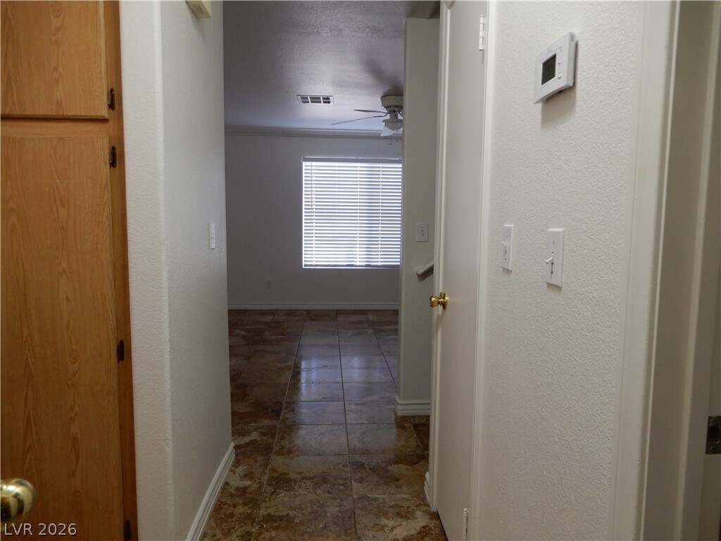 TERRIFIC LOCATION right off Las Vegas Blvd & Silverado Ranch. GATED Townhome Community. Two story, 3 bedrooms, 2.5 bath All bedrooms on second floor - two with walk in closets and attached bath. Small loft area. All tile flooring on first level - Open Great Room style. 2 car garage. Parking Restrictions are enforced by HOA. No yard - just a front Courtyard. Community pool.