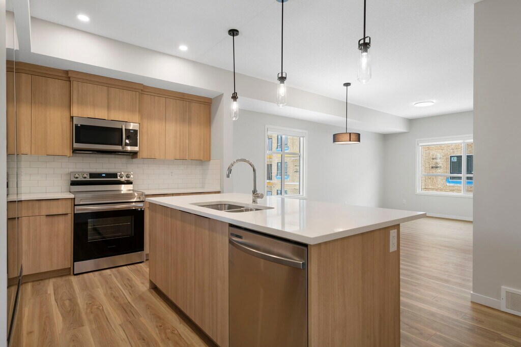 Welcome to Riverstone Manor, located in the highly desirable Cranston – Riverstone community, where modern living meets unparalleled access to nature. This spacious end-unit townhome offers over 1,700 sq. ft. of thoughtfully designed living space, making it ideal for families or professionals seeking space, comfort, and lifestyle. The main living level features an open-concept kitchen and living area designed for both everyday living and entertaining. Large windows and the end-unit location provide exceptional natural light throughout the home. The residence includes three generously sized bedrooms and three full bathrooms, offering excellent flexibility for families, guests, or home-office needs. A double attached garage provides secure parking and additional storage. Additional highlights include: End-unit layout for added privacy and light Well-designed, spacious floor plan Clean, modern finishes throughout Move-in-ready condition Residents of Riverstone enjoy access to exclusive community amenities, including: Members-only splash park Tennis courts Ice rinks Century Hall with gymnasium and community spaces Perfectly situated, Riverstone is connected to Fish Creek Provincial Park and offers direct access to the Bow River pathways, creating an exceptional balance between urban convenience and outdoor living. Public transit is nearby, and shops, retail, dining, and entertainment options are just a five-minute drive away. This property is professionally managed by Citysearch, providing residents with responsive service and 24/7 on-call support. An exceptional opportunity to enjoy space, comfort, and lifestyle in one of Calgary's most sought-after communities.