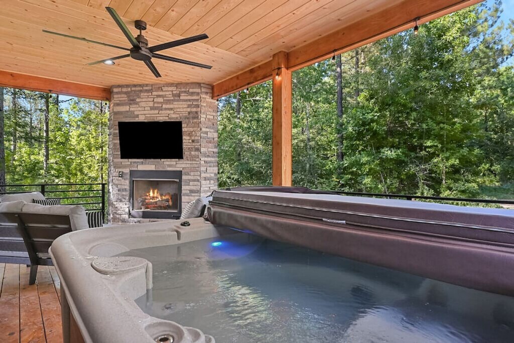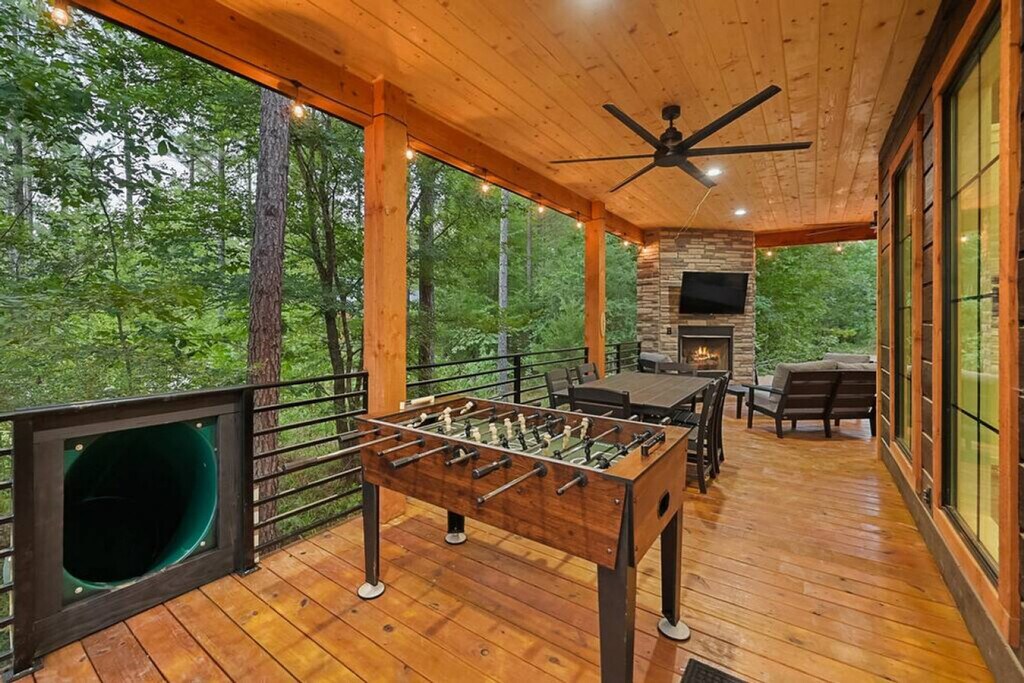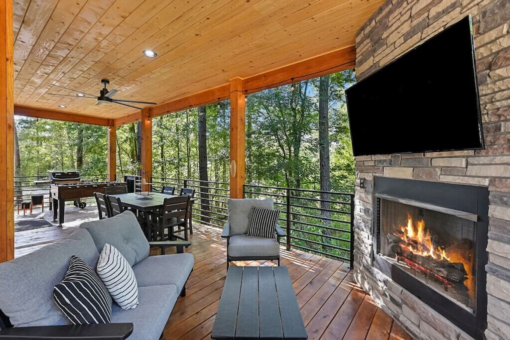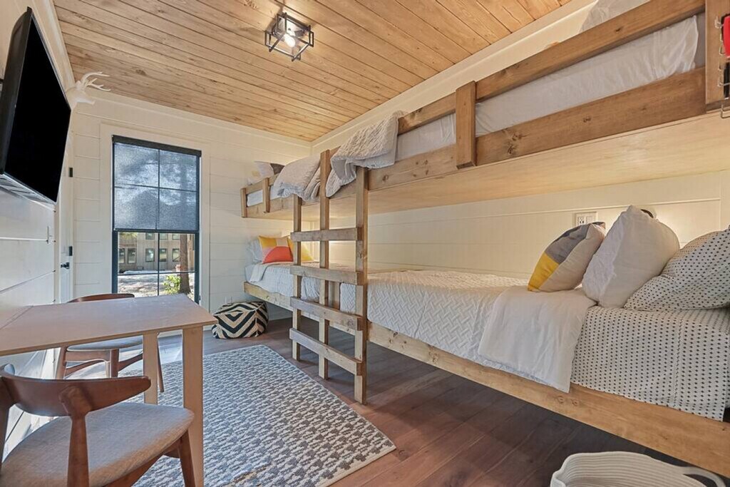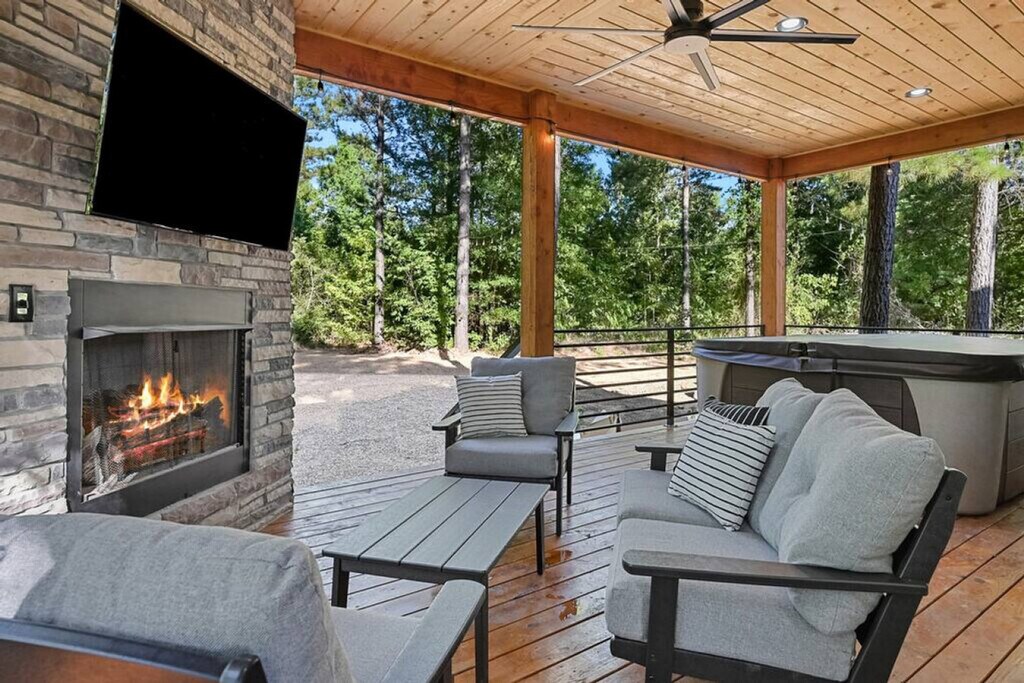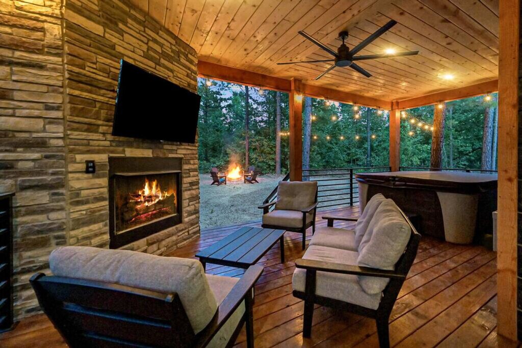 Welcome to your luxurious Broken Bow getaway, "Get Toasted," featuring two primary bedrooms with attached en-suites and king-size beds, a 4-bed bunk room, a 2-bed bunk room, and an additional bathroom. The fully equipped open-concept kitchen seamlessly blends into the living spaces, creating a welcoming environment for relaxation and entertainment. For entertainment, the cabin offers shuffleboard, vintage arcade games, yard games, a fire pit, and a hot tub, ensuring endless fun and relaxation. The "Smart Cabin" experience is enhanced with QR codes and video tutorials throughout, making your stay both modern and convenient. Check-in is after 4:00 PM and checkout is at 11:00 AM, with self-check-in available through a SmartLock. No parties or events are allowed unless explicitly granted privilege in writing. Unauthorized events or parties will incur an initial fee of $500, and you may be required to vacate the property immediately without a refund. Smoking is prohibited inside the house and within 6 feet of any doorway. No pets are allowed on the premises. [SI]