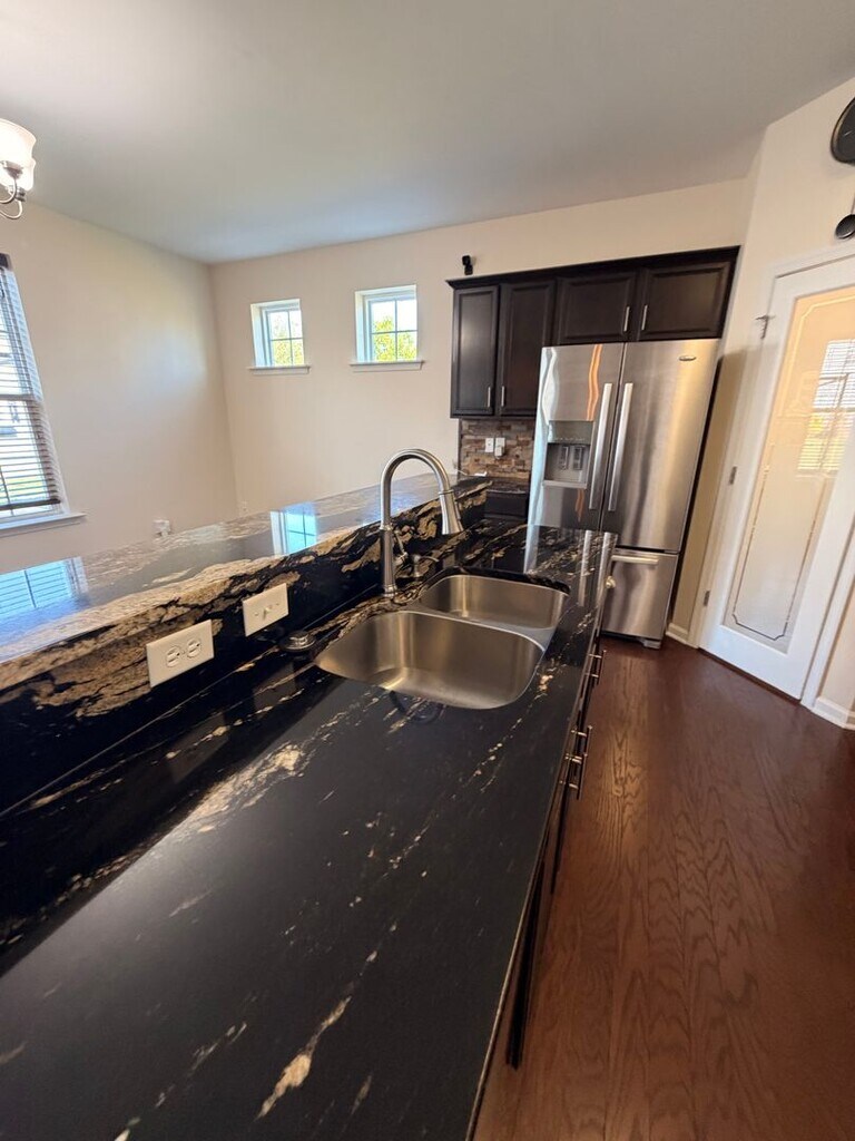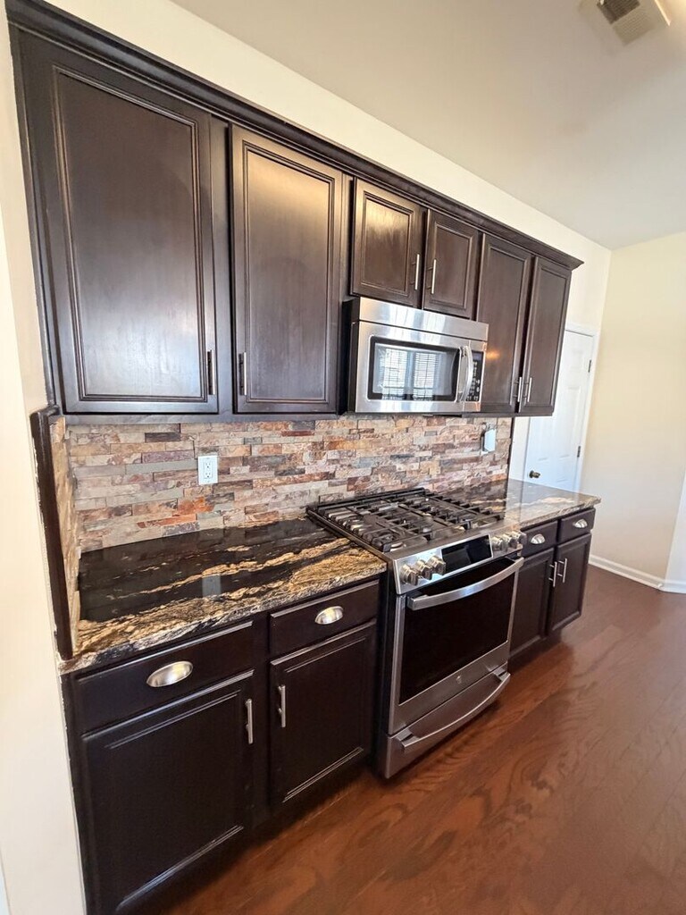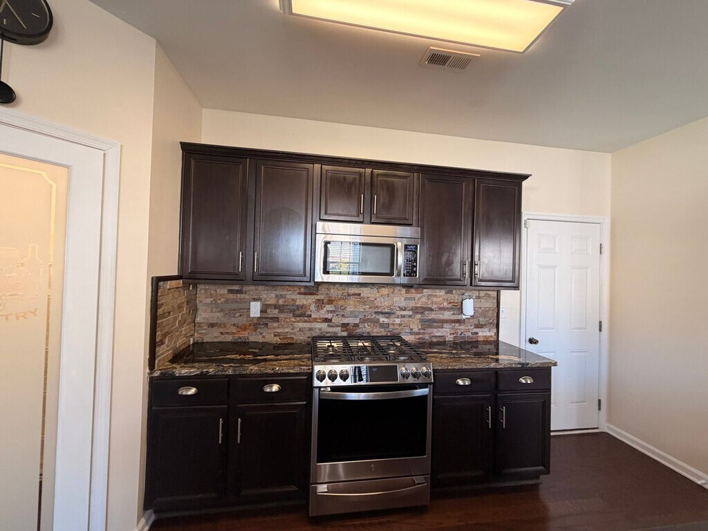 Welcome to 42 Kilverstone Way in the desirable Hampshire Glen community—where space, flexibility, and thoughtful upgrades come together. This beautifully maintained 4-bedroom, 2.5-bath home offers over 2,600 square feet across three levels, providing room to live, work, and unwind. From the moment you arrive, you’ll notice the covered front porch, 2-car attached garage, and professionally installed year-round holiday lighting system—fully customizable and controlled by the Trimlight Edge app for effortless curb appeal in every season. Inside, the main level features a welcoming front room and a spacious living area with a cozy gas fireplace, perfect for relaxing or entertaining. The kitchen is a standout with custom granite countertops, stainless steel appliances including a refrigerator, gas stove, over-the-range microwave, and dishwasher, plus a touchless faucet, walk-in pantry with etched glass door, and an oversized breakfast bar that anchors the space. A convenient half bath and coat closet complete the first floor. Upstairs, the primary suite is a true retreat with tray ceilings, abundant natural light, and a massive custom walk-in closet with built-in cabinetry. The en-suite bath offers dual granite vanities, a custom walk-in shower with bamboo seating, built-in shelving and ledges, along with additional linen and storage closets. Two additional bedrooms—including one with double doors, dual closets, and a charming window alcove—provide flexibility for family, guests, or office space. The second-floor laundry room is designed for convenience with custom cabinetry, countertop workspace, hanging rods, and washer and dryer hookups. The third-floor bonus room (FROG) expands your options even further—complete with a walk-in closet, making it ideal as a fourth bedroom, home office, gym, or media room. Step outside to your own private backyard retreat—designed for both relaxation and entertaining. Enjoy a maintenance-free deck overlooking a beautifully designed stone patio with a wrought iron pergola, perfect for outdoor dining or lounging. A built-in drainage system ensures the patio stays dry and usable year-round. The detached she shed is a true standout—fully equipped with electricity, mini-split HVAC for year-round comfort, built-in blinds, ceiling fan, TV mount, retractable screens, and electronic locks. It also features permanent customizable holiday lighting, making it an ideal space for a home office, studio, or private escape. An additional detached tool shed provides excellent storage, complete with a pedestrian door and wide double doors with a ramp for easy access to lawn equipment. Thoughtfully upgraded throughout, the home features modern fixtures and lighting along with smart home conveniences including a Vivint security system (tenant may activate monitoring), smart thermostat, and electronic door locks on the front, back, and she shed. This home offers the space you need, the upgrades you want, and unique features you won’t find in a typical rental—all in a well-established community close to everything Hampton has to offer.