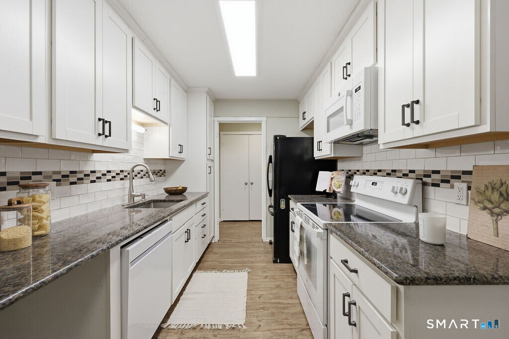 Call for Availability - Discover easy, comfortable living just minutes from the heart of Simsbury. This beautifully updated ranch style condo offers the perfect blend of style and simplicity-all on one level. Step inside to a bright, freshly painted living space featuring an open layout, recessed lighting, a cozy fireplace, and two sliders leading to a spacious deck overlooking a peaceful stream. It's an ideal spot to unwind or entertain. The updated kitchen shines with granite countertops, modern cabinetry, a subway tile backsplash, deep sink, and stainless appliances. Both bedrooms offer new carpeting, with the primary suite featuring generous closet space and a private full bath. A second full bath includes a tub for added convenience. Enjoy year round comfort with a newer heat pump and multi-split system, plus the ease of in unit laundry with a brand new washer. Vinyl flooring throughout the main areas keeps maintenance simple. Residents also have access to a beautifully maintained inground pool and clubhouse-perfect for relaxing weekends. A private garage and additional parking add to the convenience. All of this is located just moments from downtown Simsbury, the library, Rails to Trails bike path, Simsbury Meadows Performing Arts Center, The Coffee Spot, shops, restaurants, and more. If you're looking for a peaceful, low maintenance home with modern updates and unbeatable convenience, this condo delivers. MLS# 24160322
