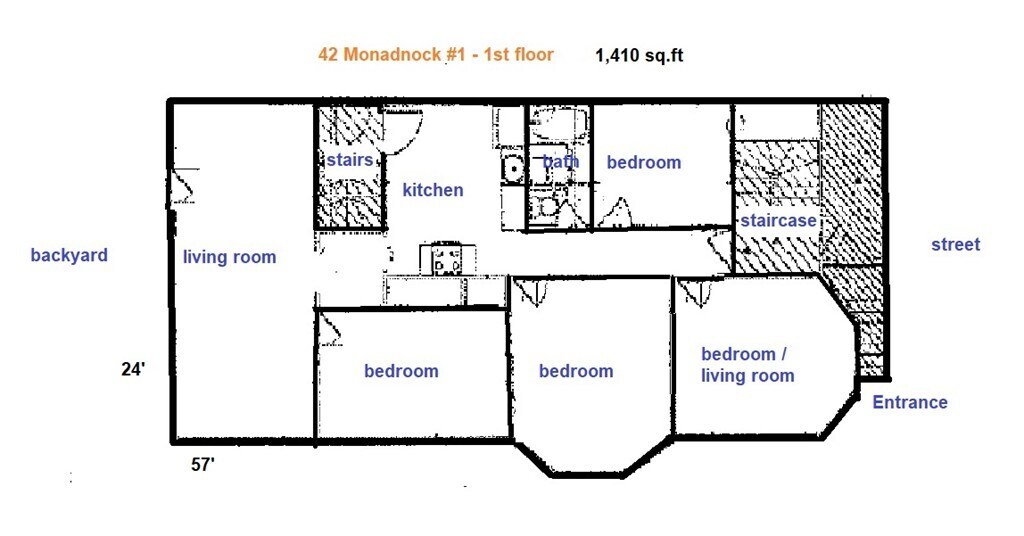 There is currently a 4 Bed 1 Bath Apartment for rent with 1,410 listed at 42 Monadnock St. It is Available Now.