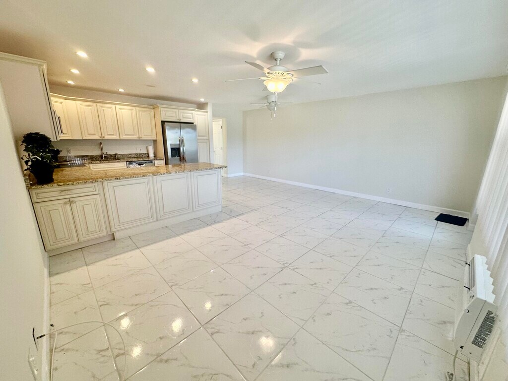 Available for rent in the 55+ community of Century Village,West Palm Beach is a fantastic second-floor condo featuring 1 bedroom,1 full bath,and a half guest bathroom. The open kitchen boasts modern updates,an island,stainless steel sink,exten MLS ID B26006823