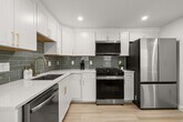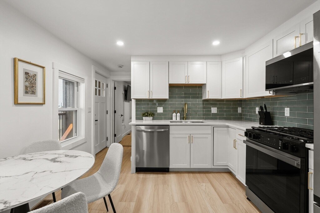 Available for rent starting 5/1,this beautifully renovated first floor unit sits on a private way in highly desirable East Boston. Unit 1 offers 2 spacious bedrooms and 2 full bathrooms,thoughtfully updated with modern finishes throughout including quartz counters,stainless appliances,engineered flooring and energy efficient systems. Kitchen is L shaped with green backsplash for whimsy! The bedrooms flank opposite ends of the unit,great for roommates or guests. The central living room has space for a dining area as well,and access to a side patio for grilling! Kitchen isRear bedroom features en suite bath with tiled shower,and W/D is located in hall. Additional highlights include lots of windows,Samsung appliances,sleek floating vanities,and electronic locks for added convenience. Located 1 block to the bus route for a 15 minute commute to downtown,blocks from sports fields,Condor Urban wild,and nestled int he heart of historic Eagle Hill! MLS# 73498976
