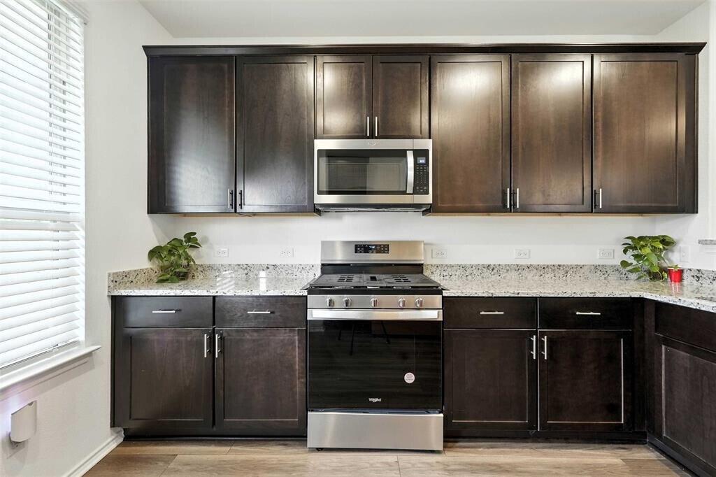 Smart design meets everyday comfort in this well-maintained 4-bedroom, 3-bath home on Georgetown’s growing west side. The versatile layout offers a full bedroom and bath on the main floor, with the primary suite and two additional bedrooms upstairs—perfect for a variety of living arrangements. Inside, enjoy wood-look flooring, granite countertops, upgraded fixtures, and an open-concept kitchen that flows seamlessly into the living and dining areas. A dual-zone HVAC system with smart thermostats upstairs and downstairs ensures year-round comfort and energy efficiency. This home is equipped with tech-friendly features including dual Wi-Fi adapters for strong connectivity, a smart garage with remote access, and a full Ring security system—doorbell camera, floodlight cam, backyard cam with solar panel, and motion detectors. A Schlage smart lock provides keyless entry and Alexa compatibility. Refrigerator, washer, and dryer are included. Conveniently located minutes from Wolf Ranch Town Center, Downtown Georgetown, and the San Gabriel River Trail, with quick access to I-35 and the 130 Toll, this home offers both comfort and convenience.