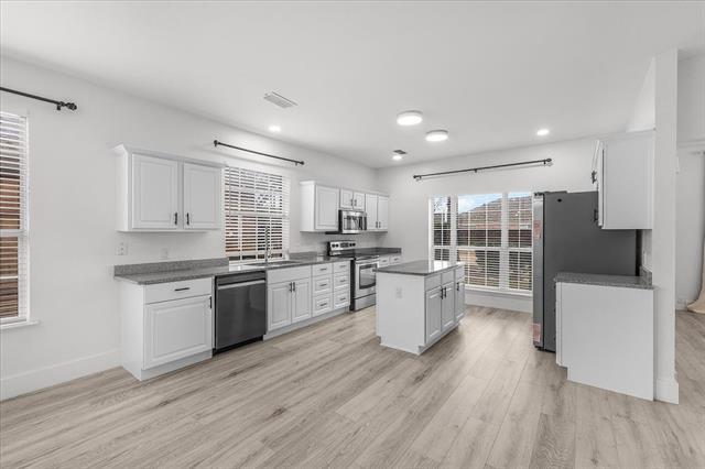 Spacious and beautifully updated, this Keller lease home offers a bright, inviting interior with the room and flexibility today’s tenants are looking for. From the moment you step inside, the dramatic two-story entry makes a strong first impression, complemented by fresh neutral finishes, updated flooring, and an abundance of natural light throughout. The layout features multiple living and dining spaces, giving you plenty of options for everyday living, entertaining, working from home, or creating a playroom or flex space. The open-concept kitchen is a standout with crisp white cabinetry, generous counter space, stainless steel appliances, a center island, and a sunny breakfast area that flows seamlessly into the main living space with fireplace. Upstairs, the oversized primary suite offers a peaceful retreat with vaulted ceilings, a spacious ensuite bath, separate shower and soaking tub, dual sinks, and an impressive walk-in closet. Secondary spaces throughout the home feel open and airy, with large windows and clean, updated finishes. Outside, enjoy a generously sized fenced backyard with an expansive wood deck and plenty of room to relax, entertain, or play. Set on a well-kept lot in an established Keller neighborhood, this home combines comfort, style, and functionality in a highly desirable location. Schedule your showing today!