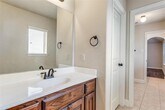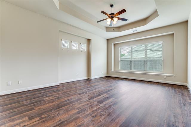 SPACIOUS 4 Bedroom (Primary Bedroom Downstairs, Secondary Bedrooms Upstairs), 3.5 Bathroom home with PRIVATE STUDY downstairs. Open Floor Plan kitchen with granite counters, GAS COOKTOP, and wine refrigerator and storage area. NO CARPET. Plenty of Natural Light throughout. Upstairs Living Room and MEDIA ROOM. Just enough backyard to enjoy. 3 CAR GARAGE. Not far from HEB Grocery Store. PROSPER ISD. Not far from 380 and DNT. $20 per month AC filter fee.