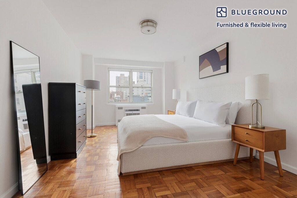Feel at home wherever you choose to live with Blueground. You’ll love this roomy Yorkville furnished one bedroom apartment with its modern decor, fully equipped kitchen, and cheery living room. Ideally located, you’re close to all the best that New York has to offer! (ID #NYC2182) The advertised rate of $3,438/month is the lowest available price, based on a 2 month(s) and 19 day(s) stay with a move-in date of February 7, 2026. If you’re looking for a 1-year stay, the rate is $5,538/month. Rates vary depending on the duration of stay, season, and other parameters. For exact pricing and additional pricing components, please visit our website and enter your desired move-in and move-out dates. The rate is applicable when billed upfront; it can be higher if billed in multiple payments. Brokers are welcome to reach out. Were you looking for an unfurnished lease? Try Blueground instead and upgrade from unfurnished to furnished living: - Furnished at rates comparable to unfurnished - No setup or furniture costs - save thousands - Move-in ready - save time, just bring your suitcase Designed with you in mind Gorgeous furniture, fully equipped kitchen, smart TV, and a premium wireless speaker are just a few of the amenities you’ll find inside this one bedroom apartment. Ideally located in New York, you’ll find a lot to love outside as well. When you’re ready to relax, you’ll be happy to discover every Blueground bedroom comes with superior quality mattresses, luxury linens, and cozy towels. We handle everything so you can simply show up and start living. Sleeping arrangements King Bed, 70.8in/180cm Amenities Building amenities unique to this one bedroom apartment include an on-site: - Doorman - Dryer in building - Elevator - Washing machine in building - Pets allowed Arrival and ongoing support The entire apartment is yours to enjoy! Throughout your stay, you’ll have access to our Client Experience team through the Blueground App. You can schedule additional cleanings, submit maintenance requests, and view our neighborhood recommendations with just a few taps. We’ll share all details upon confirmation of your stay. Other things to note This Blueground apartment has flexible lease options, allowing you to book it for one month, a year, or more. Pets are welcome, though weight limits and breed restrictions apply and may incur fees. Brokes CYOF. We take great pride in ensuring every photo displayed is shot in our own units with our actual furnishings. That said, we regularly refresh our decor and furniture arrangement, which may differ from what’s pictured. [SI]