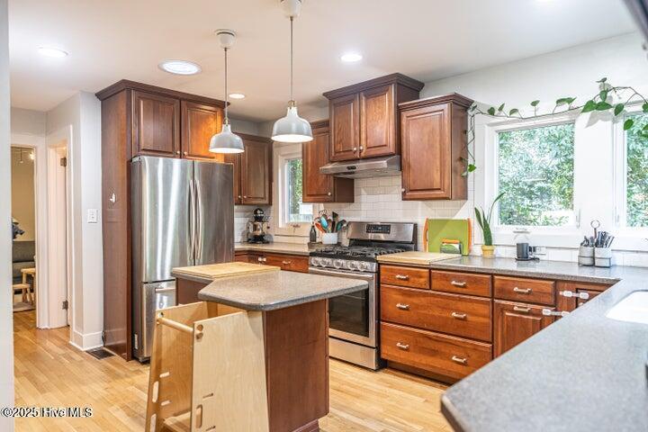 Available October 1st 2024. Roughly 2,100 sqft, beautifully remodeled ranch located within walking distance to downtown Southern Pines. The main living space offers wood floors throughout all living spaces, extending into the bedrooms. Kitchen includes granite countertops, stainless steel appliances with natural gas range and ample storage. Spacious primary bedroom with walk in closet and updated well appointed primary bathroom. Two large bedrooms share updated full bathroom. Playroom located off the kitchen can be used as the fourth bedroom. Fully fenced backyard with mature landscaping offers plenty of outdoor entertaining space! Pets accepted at discretion of the owners with non refundable pet fee.