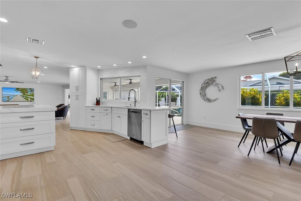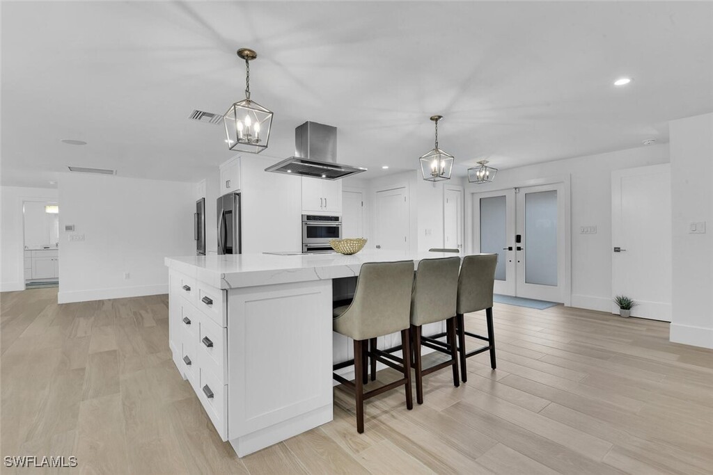 Enjoy the Naples sunshine and tropical beach lifestyle at Harbour House! This newly renovated home is ideally located in the elite Moorings neighborhood,an easy 1/2 mile walk to the nearest beach access. The spacious open floor plan places the fully equipped kitchen with large island at the center of the home with a pass through window to the screened lanai and pool area. On one side is the dining area with seating for 8 and a built in wet bar with wine fridge. On the other side of the island is the family room with pocket sliding glass doors that lead out to the lanai. Outside,the screened lanai with southern exposure has a heated pool with spillover hot tub and sunning area with two chaise lounges. A fully fenced in grass yard is located on the east side of the house - perfect for outdoor yard games! The nearest public beach access at Via Miramar is just 1/2 a mile walk over the scenic Harbour Drive bridge. The Moorings is centrally located West of 41,just minutes to 5th Ave S,Venetian Village and Waterside Shops. The home is turnkey furnished,all bedrooms and the family room have Smart TVs with Xfinity cable service and the house has high-speed WiFi.