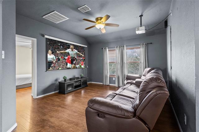 Gorgeous 5-bedroom, 3-bathroom home available for lease in Woodcreek featuring a spacious and functional floorplan. The home includes a dedicated media room equipped with an 8-foot projector screen, 1920x1080 resolution projector with two HDMI inputs and 2000 lumens, perfect for movie nights football season or gaming. Built in speakers, ceiling mount compatible. Seating in media room can be left or removed. The lease includes a refrigerator, washer, and dryer, and one bed can remain if desired. Enjoy outdoor living on the large deck, ideal for entertaining or relaxing watching the Texas sunsets. Residents also have access to Woodcreek community amenities, including resort-style pools, parks, playgrounds, walking trails, a clubhouse, and a community gym and fitness center. This well-appointed home offers comfort, entertainment space, and convenience in a vibrant master-planned community. Royse City ISD. Water and HOA are included in the rental price!