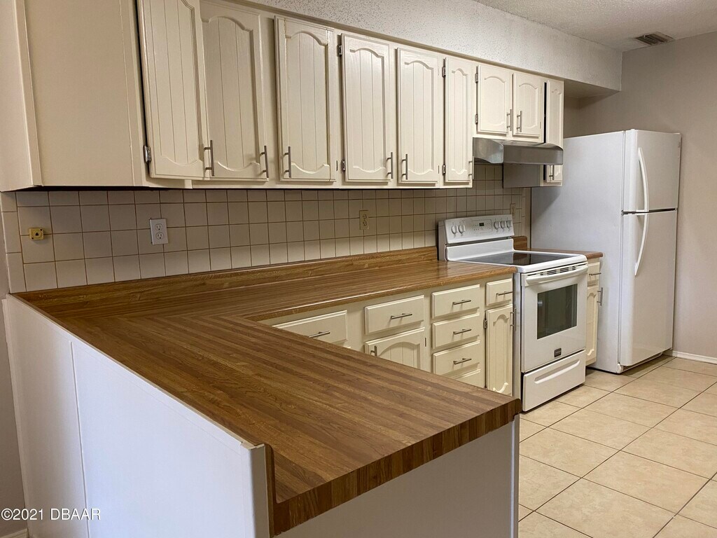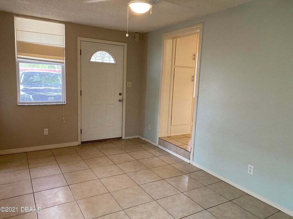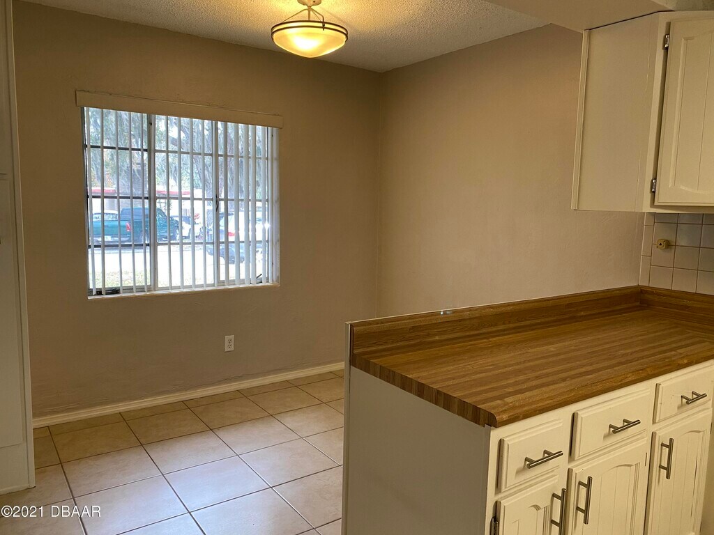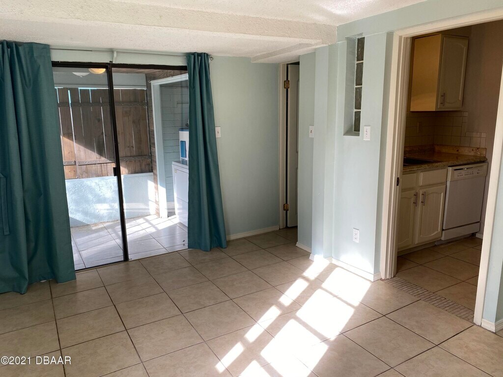 1 bedroom apartment in a duplex just off 6th in Holly Hill. Just 3 blocks from the Halifax River on a cul de sac 420 1/2 Miriam Ave is a bright spacious apartment. 1 story. All tile floors. Big eat-in kitchen w/ dishwasher and plenty of cabinet & countertop space. The bedroom has sliding glass patio doors that lead to an enclosed porch. Washer & dryer for this unit only. Central AC. Big fenced in backyard w/ divider separating yard from the A side unit. Off street driveway parking. Non aggressive breed/ pet OK w/ pet fee. Avail now. Move in costs = $1000 first month's rent + $1000 sec dep. Professionally managed.