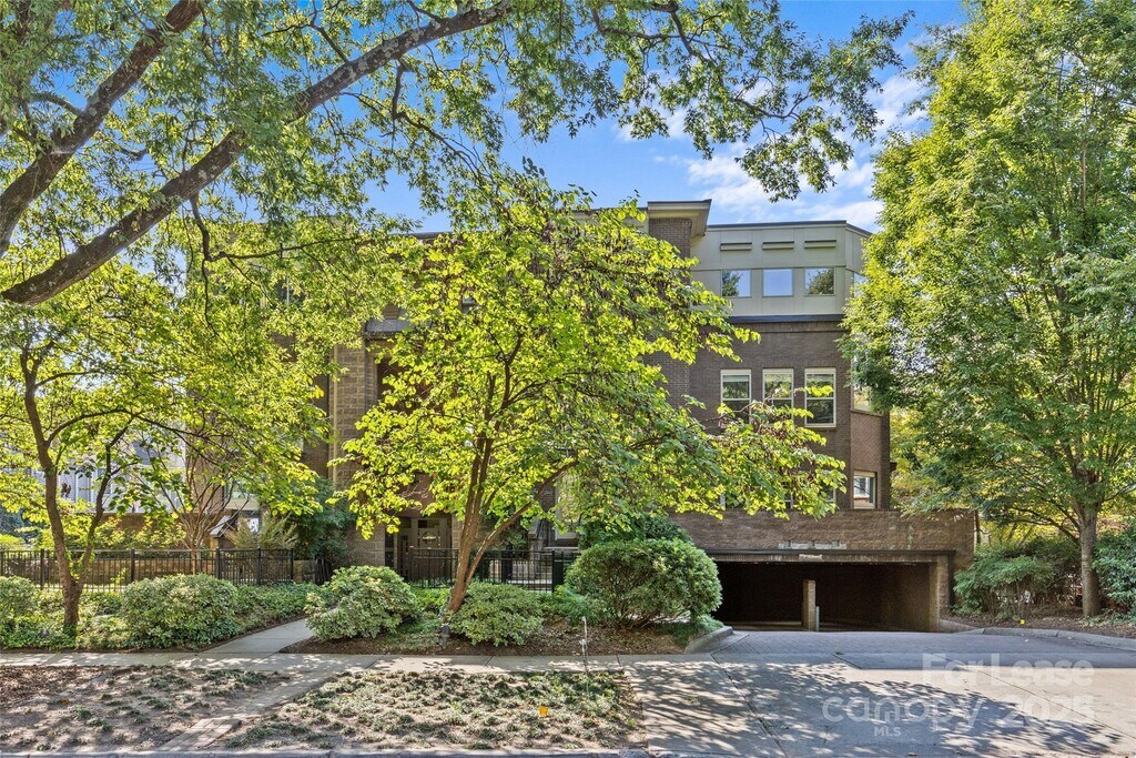 Nestled in the heart of Charlotte’s iconic Myers Park,this sophisticated 10-unit gated condo on Queens Road offers modern elegance & urban convenience. Architected by Anderson Pearson,the contemporary design features a stunning central courtyard that creates a serene atmosphere. The main level boasts an open living area w/ natural wood accents,a see-through fireplace & soaring ceilings,creating a light-filled space. Sleek kitchen is equipped w/ granite countertops,stainless steel appliances w/ gas range & walk-in pantry. Primary suite on main offers privacy & luxury w/ three closets,en-suite bath featuring a glass walk-in shower & private balcony. The upper level hosts 2 bedrooms,2 full baths & laundry,all w/ brand-new carpeting. Enjoy secure,easy living w/ 2 assigned parking spaces in the garage & separate storage unit. This prime location is steps away from Uptown,SouthPark,Elizabeth & Midwood providing effortless access to shopping,dining,entertainment & green spaces.