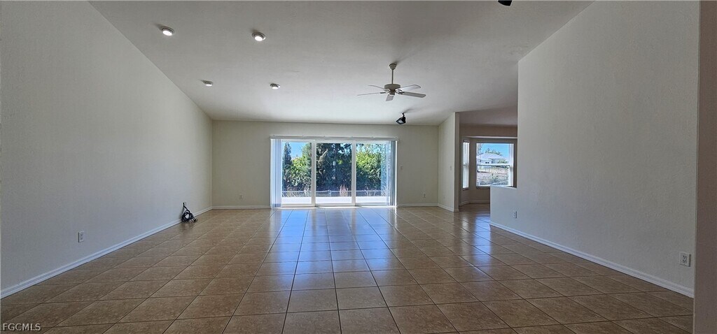 Beautiful Southern Exposure Freshwater Canal Home for Rent – 3 Bedrooms,2 Bathrooms,2-Car Garage! Located in a highly desirable and convenient area,this spacious and well-maintained home offers city water and sewer,a beautiful brick paver driveway,and a durable steel tile roof. Enjoy being just minutes from schools,shopping,dining,hospitals,and everyday conveniences—making this an ideal location for comfortable Florida living. The property features elegant curb appeal with white rock landscaping,a skylit entryway,and a fully fenced yard with white vinyl fencing in the front and left side and chain-link fencing along the sides and rear—perfect for securing pets and family while still preserving the beautiful canal views. Step through the double entry doors into a welcoming foyer with high ceilings and tile flooring throughout the main living areas. The home is equipped with hurricane impact windows and sliding glass doors throughout for comfort and security. The guest bedrooms are nicely sized,each offering closets,ceiling fans,lighting,and blinds. The guest bathroom features a quartz countertop,attractive cabinetry,and a tub/shower combination. The primary suite offers luxury vinyl flooring,large double sliders leading directly to the oversized lanai,and a beautifully updated spa-like bathroom with quartz vanity,a walk-in shower with decorative brown and black rock flooring,built-in shower niches,handheld showerhead,rain shower,and LED lighting. The interior laundry room includes a brand new washer and dryer for added convenience. The huge living room is bright and open with recessed lighting and a stunning three-panel pocket impact slider that opens wide for true indoor-outdoor living. The oversized kitchen offers a U-shaped quartz countertop,beautiful cabinetry,a large pantry,and plenty of room for cooking and entertaining. There is also a spacious dining area with beautiful bay windows overlooking the yard. The large-capacity Samsung side-by-side refrigerator with twin cooling adds both style and function. Additional features include a two-car garage with insulated hurricane-rated garage door,newer A/C system with UV lighting,side yard trash can area,and a storage shed for extra convenience. Out back,enjoy a large concrete patio with plenty of room for entertaining,barbecuing,sunbathing,and relaxing while taking in the beautiful freshwater canal views and stunning sunsets. With southern exposure and a fully fenced yard,this home is perfect for enjoying the Florida lifestyle. Don’t miss this opportunity to rent a spacious canal-front home in a prime location with privacy,upgrades,and exceptional indoor-outdoor living!