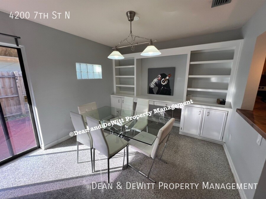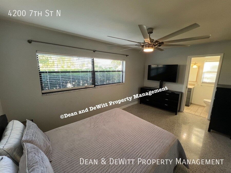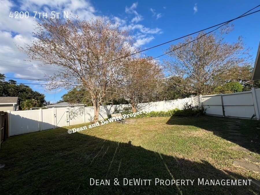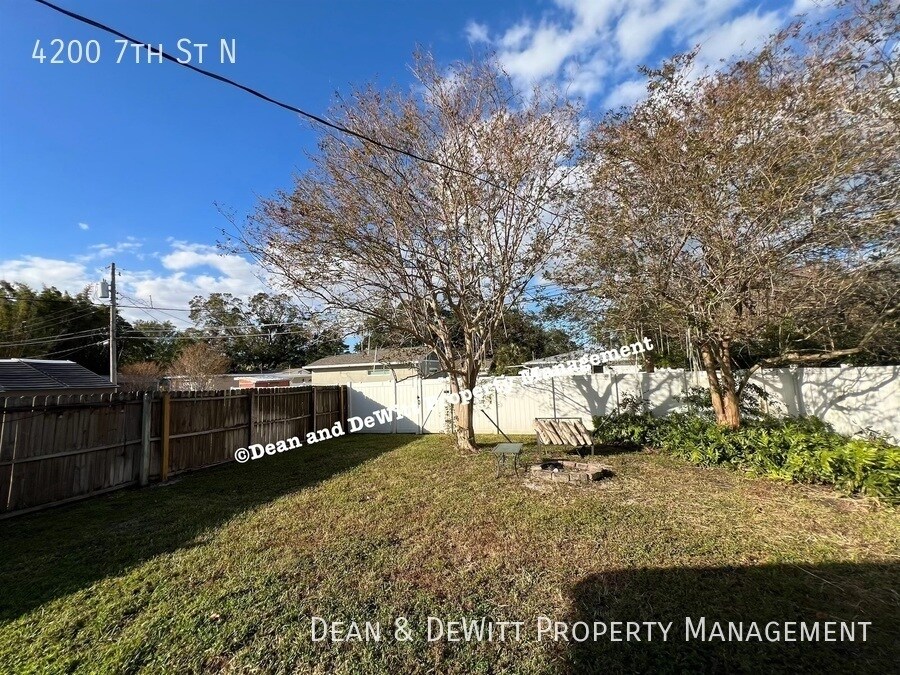 Available 1/15/25 (currently tenant occupied) 12 month lease 2 bedrooms and 2 bathrooms Home is being offered furnished or unfurnished Unique & Charming with a Vintage Feel! This is an absolutely lovely 2 Bedroom 2 bath home with over-sized one-car garage, Newly Vinyl Fenced yard with garden area and intimate covered patio. Easy Care Terrazzo flooring throughout, new Craftsman front entry door and updated ‘industrial’ lighting including Edison Bulb pendant lights that pull together the look that makes this mid-century home trendy and desirable! This excellently maintained home has incredible charm and appeal, it sits on beautifully landscaped corner lot in the highly desirable Allendale area on a lovely, quiet street surrounded amid other attractive homes. The lot is large and has room for parking boat or RV. Excellent sought-after location offering an incredibly convenient location. .. minutes from downtown, 4th Street N shopping/dining corridor. The Bay beaches are very close and an easy drive to the airports and sports stadiums. Tenant pays all utilities; lawn care included Up to 3 adult pets under 35 lbs (no aggressive breeds) with pet screening fee of $25, minimum $300 additional deposit for dog and $150 for cat, non-refundable pet fee $300 for dog and $150 for cat, $25/mo per dog and $15/mo per cat. Applicants with dogs are required to provide a photo, animal license, current shot records and have renter's insurance with pet liability. $95 non-refundable application fee for each adult covers credit and background check $100 administrative fee will be charged upon approval. The unit will not be reserved for applicant until administrative fee is received by management. Once paid, management will process tenant, create lease, send move in instructions, etc. Security deposit due upon approval; Full first month's rent due prior to move in Basic approval requirements include a gross monthly income of three times the rent, a clean background, and fair to good credit No smoking is permitted on premises