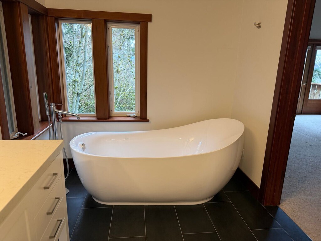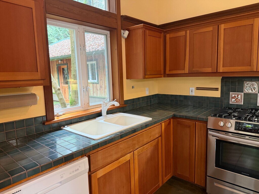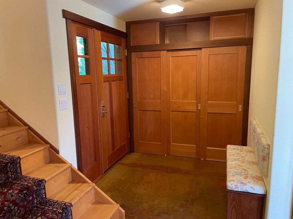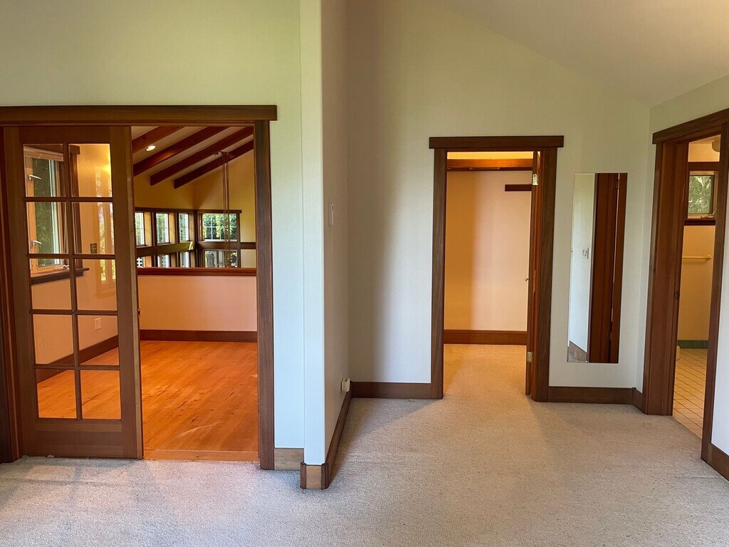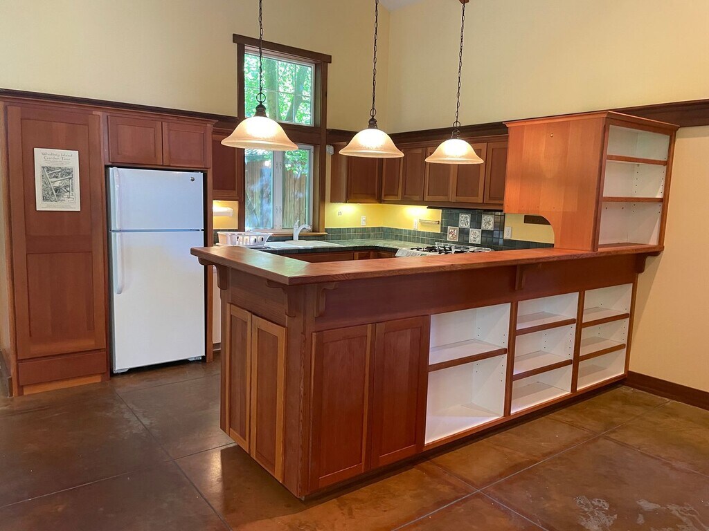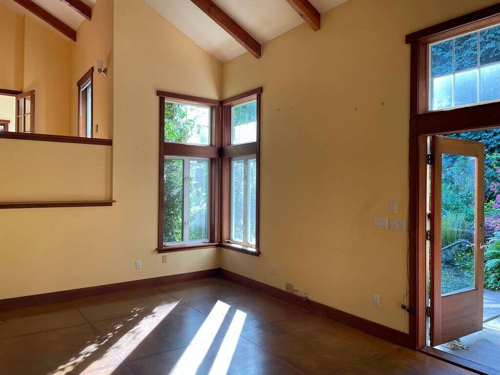 This custom craftsman home near downtown Langley allows you to escape into your own private paradise of English gardens, wildlife, singing birds, and beautiful Whidbey Island. Featuring a multi-level modern layout, with natural wood finishes, custom cabinetry and woodwork, upstairs master suite, French Doors, recently renovated bathroom, Vaulted Ceilings, Walk-in Closet, and so much more! This property has it all including concrete floors! Detached two car garage great for woodworking, parking, and storage. This is a unique property, near downtown Langley but in a world of its own. Tenant pays all utilities and maintains landscape. Secret gardens where you can add your own touches and so much privacy! Available Now! One cat or one small dog is ok with additional deposit, and this is a smoke free home and property.