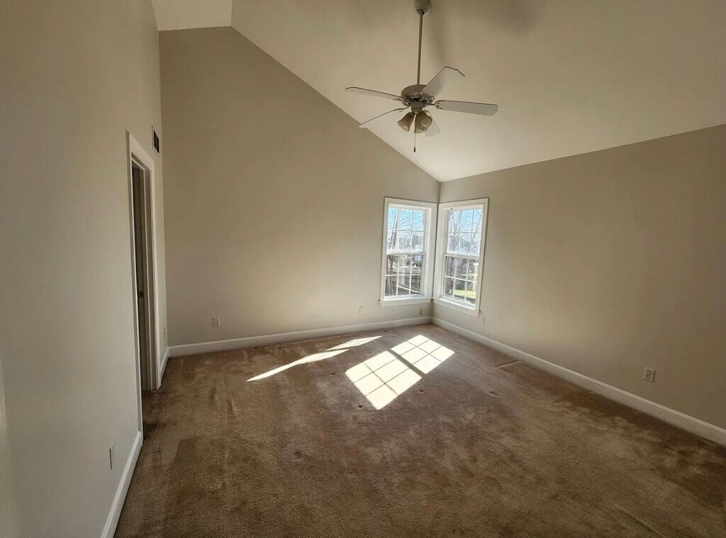 Discover your new home in this spacious,2 story 3-bedroom, 2.5-bathroom single-family house, offering the perfect blend of luxury and comfort. Featuring an open-concept floor plan, the family room is highlighted by breathtaking vaulted ceilings and large windows that flood the space with natural light. The chef-inspired kitchen boasts new appliances, ample cabinet space, and a large dining area perfect for entertaining. Retreat to the spacious master suite, which includes a private bathroom equipped with double sinks, a soaking tub, and a large walk-in closet. Enjoy outdoor living on your private, covered back porch, perfect for relaxing regardless of the weather. This home also features a basement for incredible storage or flex space, an attached 2-car garage, and a dedicated laundry room