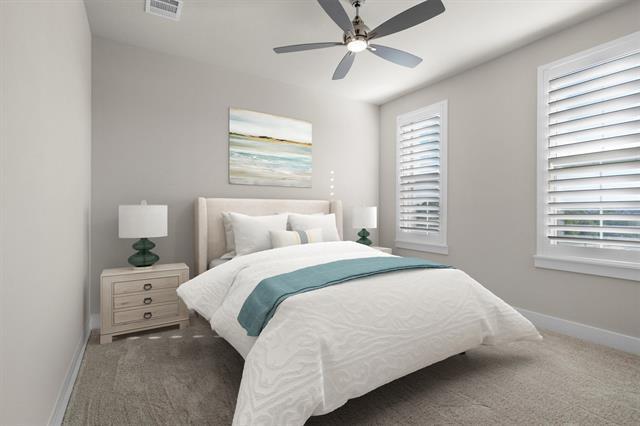 Welcome Home! Nestled in the highly sought-after Windsong Ranch Community, this charming and homey two-story residence offers the perfect blend of comfort, style, and resort-like living. Residents here enjoy exclusive access to a breathtaking crystal lagoon, sport courts, fishing ponds, scenic hiking trails, and even professionally maintained honey huts that keep the community’s natural beauty thriving. Step inside to discover an inviting open floor plan designed for both relaxation and entertaining. A peaceful at-home office provides the ideal setting for work or study, while the spacious kitchen boasts ample built-in cabinetry, a large island, and sleek stainless-steel appliances. The main living area features soaring ceilings, a cozy brick fireplace, and an abundance of natural light accentuated by elegant plantation shutters. The primary suite is a luxurious retreat, complete with a spa-inspired ensuite bathroom featuring dual sinks, a Hollywood-style soaking tub, and a walk-in shower with double shower heads. A media room adds the perfect space for movie nights or game days. Upstairs, you’ll find three additional bedrooms, three bathrooms, and a generously sized family room, ideal for hosting guests or creating a comfortable space for everyone to unwind. Thoughtfully designed with modern convenience in mind, this home also features a water softener, a built-in security system, and brand-new carpet throughout. Step outside to enjoy a covered patio and a lush green yard, perfect for pets, kids, or simply soaking up the outdoors. Experience the best of comfort and community living in this stunning Windsong Ranch home, where every detail has been designed with your lifestyle in mind.