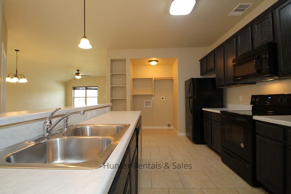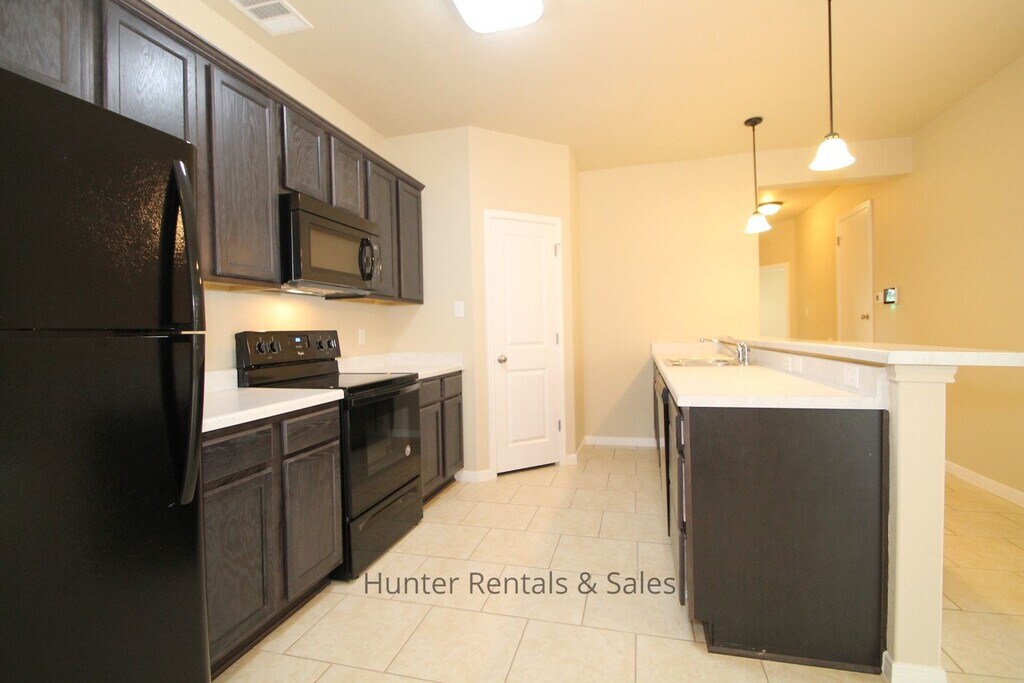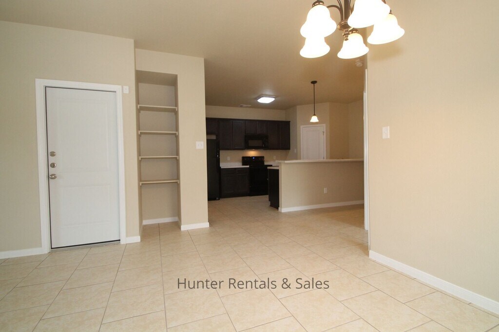 Beautiful new duplex, covered patio, privacy fenced yard, one-car garage, large open living/dining area, built in book shelves, kitchen appliances include glass top range, built in microwave, dishwasher, refrigerator, huge corner pantry, breakfast bar, laundry area, 2 in. Faux wood blinds throughout, spacious living room with ceiling fan, three bedrooms, 2 minor bedrooms have a built in desk, two full bathrooms, master bath features, big walk-in closet, door to back covered patio, raised panel doors, ceramic tile throughout and so much more. Owner pays for security system monitoring, pest control service, lawn service, and monthly a/c filter replacement PRICE AND AVAILABILITY ARE SUBJECT TO CHANGE WITHOUT NOTICE Application Information: * Offered by Hunter Rentals & Sales Visit our website, for an online application and to view complete listing information. Questions, call . * We do full background checks & are seeking qualified, long-term residents. To view our rental criteria, visit our website: * Application Fee: $65.00 each. * Security Deposit and rent is due at lease signing. * Once approved, a one-time non-refundable administration fee of $125 will apply. The administration fee is due by the lease start date.