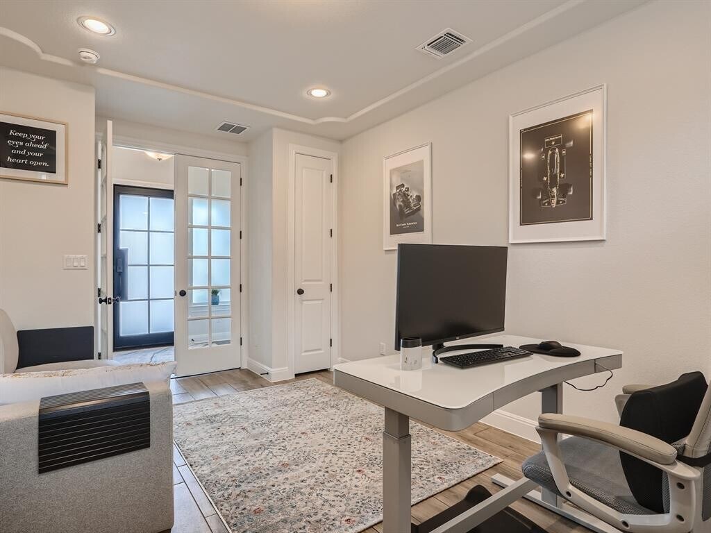 Rare Corner-Lot Retreat in Round Rock’s Tech Hub – Sunset Views, Casita, & Resort Amenities! Prime single-story garden home on a coveted corner lot in Round Rock’s high-tech district. Minutes to Dell, Samsung, Tesla, Amazon, Google, Oracle, Apple, and world-class AI & innovation centers. Walk to top-rated schools, trails, and shopping. Only one neighbor—lush greenbelt views guarantee total privacy. Sun-filled open floorplan, high ceilings, skylight, motorized blinds. Chef’s kitchen: granite, wine cooler, premium appliances, breakfast bar. Private Casita with separate entry—ideal for home office or guests. Secluded primary master bedroom offers sunset views, spa bath, giant walk-in closet. Oversized laundry, abundant storage, flex space for work or fitness. Covered patio with natural wood ceiling. HOA covers landscaping. Enjoy fast fiber internet, EV-ready garage, and access to a resort-style clubhouse, pools, walking trails, and parks. Relocate now for unbeatable amenities, location, and tech career opportunities—homes like this go fast!