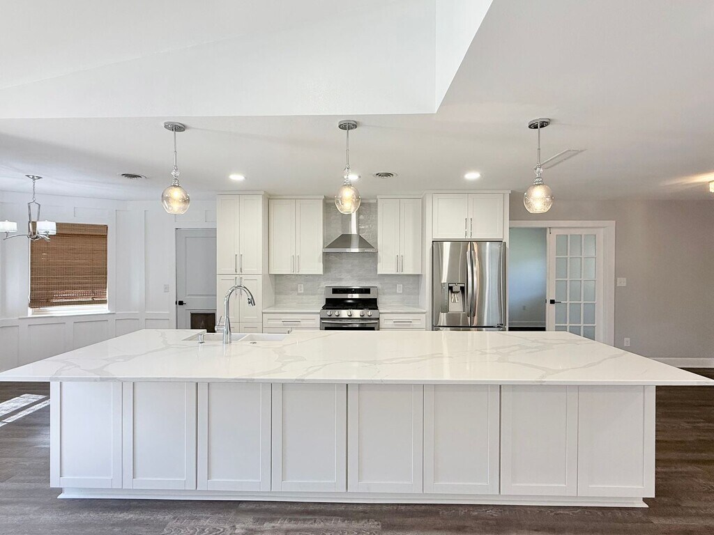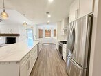 View in 3D: Welcome to this beautifully updated 4-bedroom, 3-bath home in the desirable Scenic Heights neighborhood. The open-concept kitchen and living area, plus separate formal living and dining rooms adds style and function. The kitchen showcases beautiful granite countertops across a large center island with a dual-basin farmhouse sink and dishwasher. Other stainless steel appliances include a bottom drawer refrigerator, and gas range. The primary suite boasts LVP flooring and a luxury ensuite bath with dual vanities and a walk-in shower. Two additional bedrooms share another full bath with single vanity and tub/shower combo, while the fourth bedroom also offers an ensuite bath with single vanity and tub/shower combo - perfect for guests or multi-generation living. The backyard oasis features a sparkling swimming pool with a childproof safety fence, and a sprinkler system to help keep the yard lush and green all year round.
