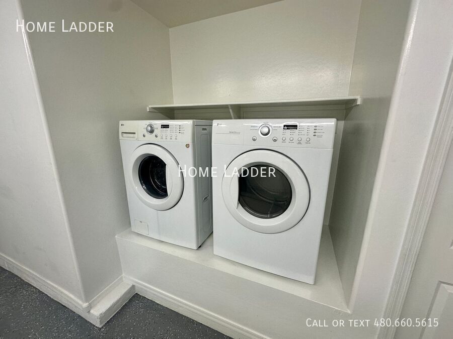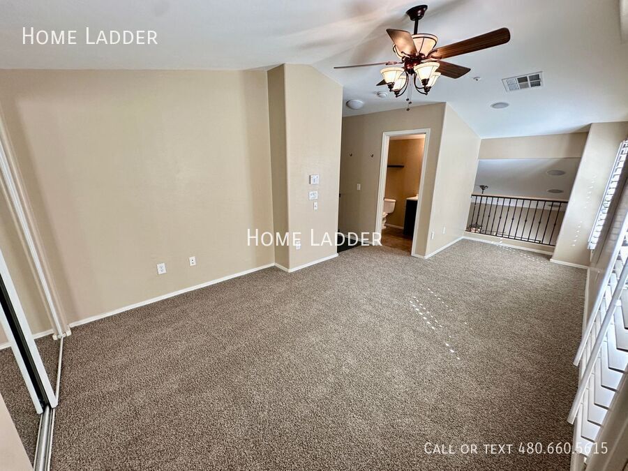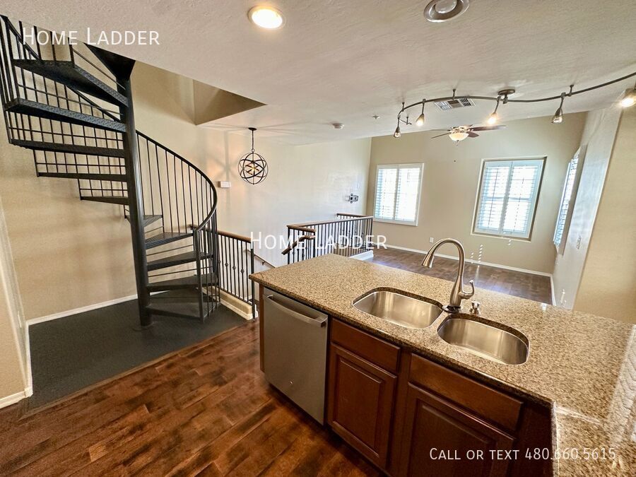 Beautifully maintained 2-bedroom, 2-bath townhouse in a prime Gilbert location, featuring a versatile downstairs flex room perfect for a home office or media space. The home offers gorgeous wood laminate flooring in the main living areas and brand new carpet in the bedrooms. The open-concept kitchen is designed for both everyday living and entertaining, showcasing rich maple cabinetry, stunning granite countertops, a beautiful backsplash, and stainless steel appliances, all flowing seamlessly into the spacious family room featuring vaulted ceiling and tons of natural light. A wrought iron spiral staircase adds character and charm, creating a unique architectural feature that leads to the upper level. The private third-floor primary suite provides a quiet retreat with plenty of space and natural light. Additional highlights include a 2-car tandem garage with abundant storage, and the washer and dryer are included. Located in the highly desirable community, the Gardens in Gilbert, residents enjoy lush landscaping, sparkling community pools, parks, and walking paths, all while being close to shopping, dining, entertainment, and convenient freeway access. All Home Ladder residents are enrolled in the Resident Benefits Package (RBP) for $50/month, which includes renters insurance, credit building to help boost your credit score with timely rent payments, $1M Identity Protection, HVAC air filter delivery, our best-in-class resident rewards program, and much more! More details upon application. Additional monthly fees: $9 admin and $35 pet rent/pet. One-time fees: $49 application fee per adult, $149 pet application per pet, $195 administration, and a security deposit equal to one month’s rent. This property qualifies for our security deposit alternative—move in with less upfront cost! 12-18 month minimum lease term. If moving in between 7/1 and 1/31, the lease term shall be 18 months. If moving in between 2/1 and 6/30, the lease term shall be 12 months. Lease must commence within 21 days of application approval. After approval, security deposit must be delivered to our office by 5pm on the next business day. The lease must start Monday-Thursday and not on any federal/state holidays. Dryer Washer