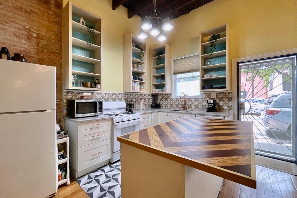 This spacious, recently renovated two bedroom home is more like a house than an apartment, with nobody above or below you. The space features an open concept living and dining area, high ceilings, exposed brick, kitchen island, dishwasher, newer hardwood floors, private backyard and a lockable dry storage shed with a light and plenty of space. One car parking available. Washer/dryer in unit. Easy transportation to NYC via bus makes this a great Union City location for commuters who can also enjoy the close proximity to shopping and restaurants on Bergenline Ave. Parking available for an additional fee. Available June 1st!