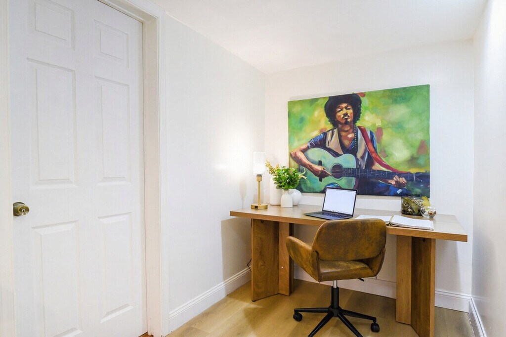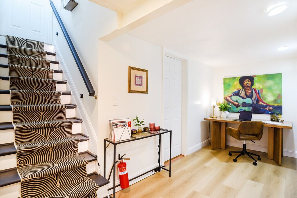 The advertised rate of $2,998/month is the lowest available price, based on a 30 day(s) stay with a move-in date of May 2, 2026. Rates vary depending on the duration of stay, season, and other parameters. For exact pricing and additional pricing components, please visit our website and enter your desired move-in and move-out dates. The rate is applicable when billed upfront; it can be higher if billed in multiple payments. Feel at home in this one-of-a-kind basement hideaway. This intimate 1-bedroom suite is designed to be discovered and quietly unforgettable. Every corner whispers calm, intimacy, and intentional beauty. Every detail has been intentionally curated to evoke warmth, quiet, allure, and a cocoon-like calm. This elegant 1-bedroom is your private sanctuary beneath the city, designed to envelop you in a soft, cloudlike atmosphere that feels both intimate and luxurious. The suite features a spacious living room designed with soft textures and ambient lighting, creating an inviting space to unwind, and a subtle, chic bathroom featuring modern fixtures, stocked with plush towels and calming scents. A charming dining area and a fully equipped private kitchenette offer all the essentials to prepare light meals, including a microwave, air fryer, fridge, toaster, coffee maker, and utensils. Guests are also welcome to use the main house’s full kitchen, stove, and amenities upstairs if needed. Guests have access to a private deck and backyard, perfect for relaxing outdoors or enjoying a quiet moment under the stars. The laundry area for the main house, including a washer and dryer, is located in the basement suite. The long-term tenant will access this area only once a week on Saturdays, with advance notice given to ensure your comfort and privacy. The main house is occupied by a resident tenant, and guests should respect her space and privacy, keeping interactions minimal. Includes a stylish workstation perfect for remote work or creative projects. [SI]