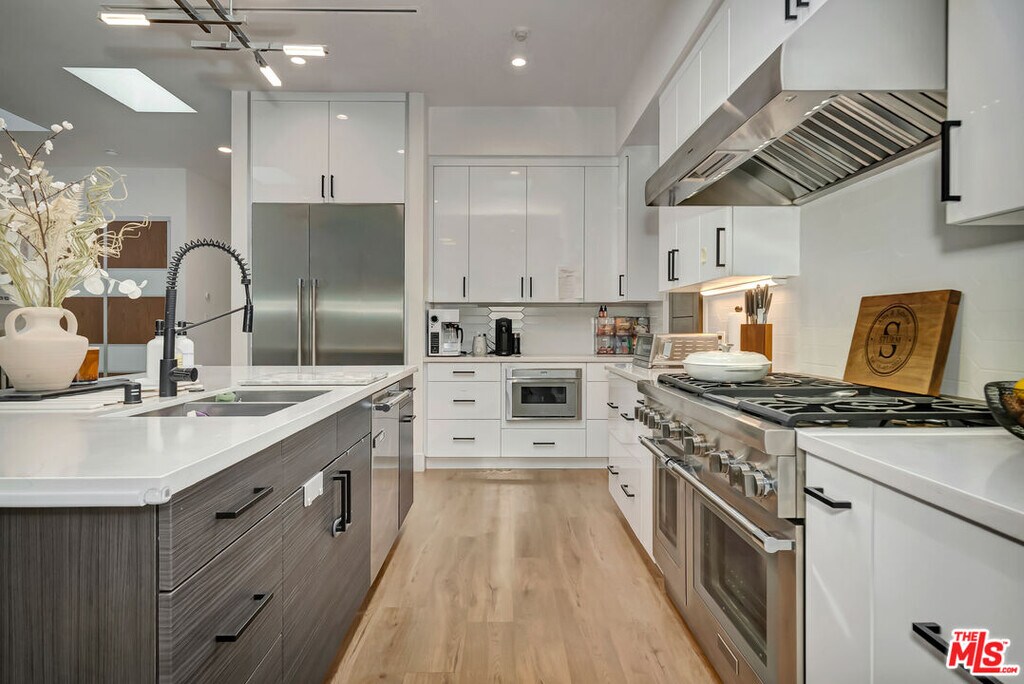 Gina CovelloSituated south of Ventura Blvd in one of Sherman Oaks most coveted enclaves, this newer modern residence is a statement in refined design and effortless California living. Beyond its clean architectural lines, the home opens to expansive interiors defined by soaring 10 ceilings, oversized bedrooms, and walls of glass that flood the space with natural light. The living room is both dramatic and inviting, anchored by a sleek fireplace and frames by large glass doors that look out to the private backyard.The kitchen features custom tilework, premium finishes and generous walk-in pantry. The dining area is designed for both intimate evenings and large-scale entertaining as this open layout connects beautifully to the main living spaces. Five generously sized bedrooms include two exceptional primary suites, each feature spa-inspired bathrooms with custom tile, luxurious finishes and abundant closet space. All offering idea flexibility for both families, guests, or dedicated work from home space.Outdoors, the manicured grounds feel like a private resort, complete with a sparkling pool and spa. There's amble space for dining and lounging under the California sky. Moments from Ventura Boulevard's premier dining, boutiques, and top-rated schools. Easy access to the Westside makes this residence a strategic investment in location, stability and desirability.