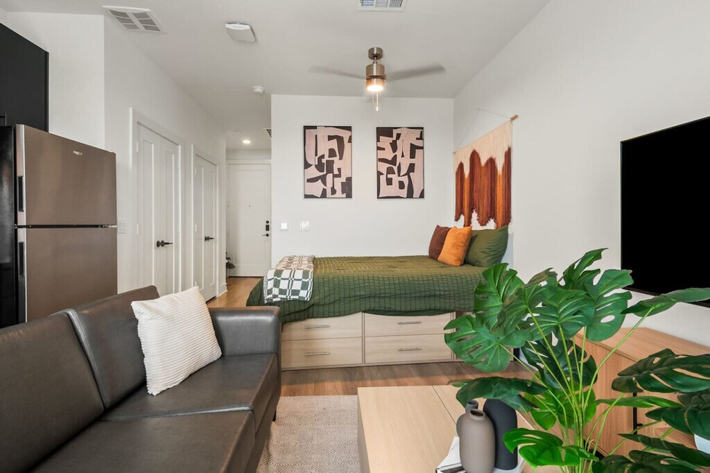 Feel at home in this cozy hideaway, tucked in the heart of Houston’s funkiest Montrose neighborhood. This private, sunlit space is thoughtfully designed for chill vibes and deep recharging. Shared building perks include a pool, chill coworking spots, a comfy lounge with a Smart TV, a fully equipped gym, and a rooftop deck with skyline views, a grill and a firepit. Free street and garage parking is available for one car. This is a super walkable area with major "you belong here" energy. Walk less than 10 minutes to local art galleries, cozy coffee nooks, buzzing thrift shops, peaceful parks, and bars. Explore Buffalo Bayou Park for kayaking, biking, or cloud watching. Enjoy coffee gems like Siphon, Black Hole, and Agora. Go thrift and treasure hunting on Westheimer and dive into Montrose nightlife, from iconic drag shows to craft cocktails. No parties or large gatherings are allowed without permission. Any unauthorized guest is subject to a $150 per guest penalty. If the neighbors call the police due to noise disturbance, a fine of $500 is applicable. There is a $500 penalty fee for smoking in the house or garage. Undeclared pets are subject to a $300 per pet per night penalty. Please respect check-in and check-out times; any unauthorized early check-in or late check-out is subject to a $100 fine. [SI]