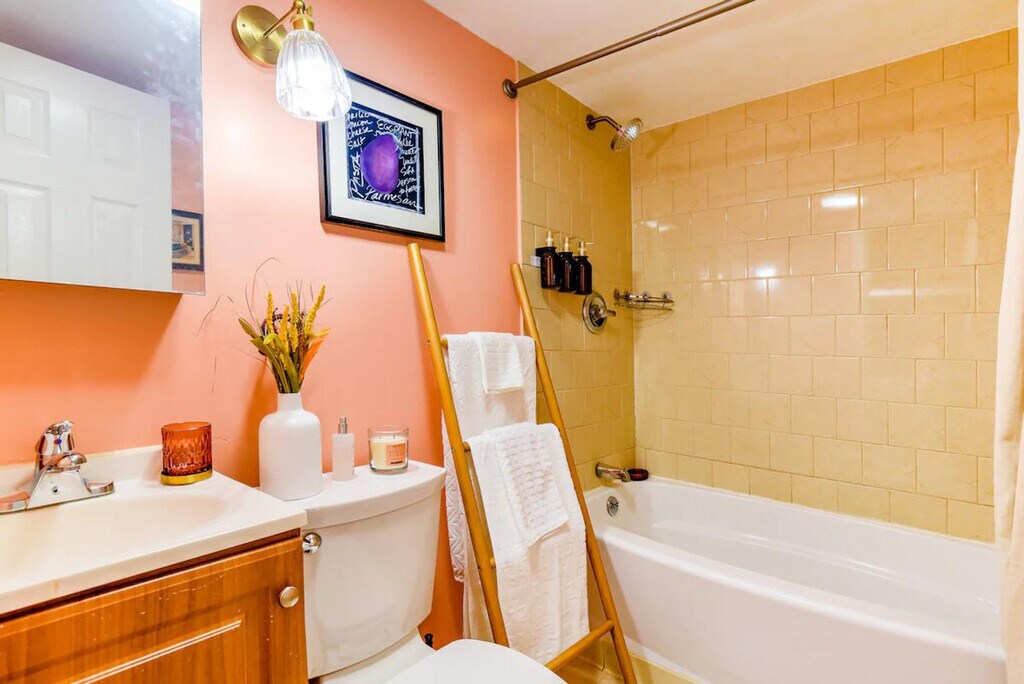 Welcome to this one-of-a-kind hideaway tucked beneath the surface like a well-kept secret. This moody, intimate, indulgent basement suite is designed to be discovered and quietly unforgettable. Every corner whispers calm, intimacy, and intentional beauty, evoking warmth, quiet, allure, and a cocoon-like calm. This elegant 1-bedroom apartment is your private sanctuary beneath the city, designed to envelop you in a soft, cloudlike calm atmosphere that feels both intimate and luxurious. Step briefly into the main house’s shared hallway, and from there, a second internal door leads directly to your private basement suite. It features a spacious living room with soft textures and ambient lighting, a warm bedroom retreat with rich chocolate walls and wooden accents, and a stylish workstation perfect for remote work or creative projects. The charming dining area and fully equipped private kitchenette offer all the essentials to prepare light meals, including a microwave, air fryer, fridge, toaster, coffee maker, and utensils. Guests are also welcome to use the main house’s full kitchen, stove, and amenities upstairs if needed, shared with another long-term tenant. Guests have access to a private deck and backyard, perfect for relaxing outdoors or enjoying a quiet moment under the stars. The main house is occupied by a resident tenant. While she's happy to assist occasionally, such as providing access to the shared kitchen when arranged, guests are asked to respect her space and privacy, keeping interactions minimal. The laundry area for the main house, including a washer and dryer, is located in the basement suite. The long-term tenant will access this area only once a week on Saturdays, with advance notice given to ensure your comfort and privacy. Includes a stylish workstation perfect for remote work or creative projects. Registration Number: HOU-0277-2025-STR-H [SI]