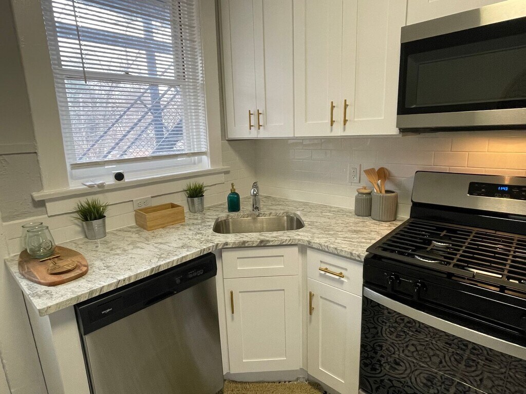 Includes WASHER/DRYER IN-UNIT. All units 2 equal large size bedrooms with 1 bath. The unit features hardwood floors throughout, a bright white completely remodeled eat-in kitchen with brand new stainless steel refrigerator, range, dishwasher and microwave with custom granite countertops. Open concept eat-in kitchen, with an updated bathroom with fresh white tile and new modern vanity. In addition, 2 OUTDOOR SPACES, a huge patio in the front, and backyard in back. These amazing units will not last call or text now to set up a showing! Owner pays water, trash and sewer. Tenant is responsible for gas, internet and electric. $75 application fee. Pets are an additional $25 per month per pet. ***NO Deposit*** ***$250 Non Refundable Move-In Fee*** ***No Smoking*** All Stainless Steel Appliances Cats Gas Stove Large Dogs Owner Approval Of Any Pets Pets: $25/Month Each Pet Small Dogs