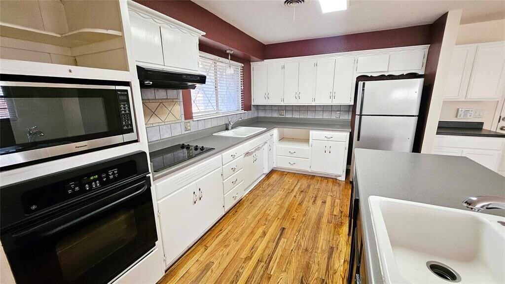 Charming residence tucked into a highly desirable spot,offering a layout you rarely see nearby. The central gathering space blends cooking,dining,and relaxing into one expansive area,creating an easy flow for everyday living or entertaining. The cooking space is equipped with a refrigerator,generous prep surfaces,bright cabinetry,and dual basins,one thoughtfully placed in the center workspace. The primary suite includes its own private washroom with a spacious step-in shower. Two additional sleeping rooms provide comfortable proportions and flexibility. Throughout the property,classic wood floors have been freshly refinished,adding warmth and character. Outside,enjoy a beautifully designed outdoor retreat with a raised terrace,enclosed grounds,and an extra outbuilding for storage. The attached garage accommodates two vehicles,includes a storm shelter,washer and dryer connections,and abundant room for organization. Convenient access to major highways puts dining,retail,and daily errands within easy reach. This one truly stands out! Schedule a showing before it’s gone!