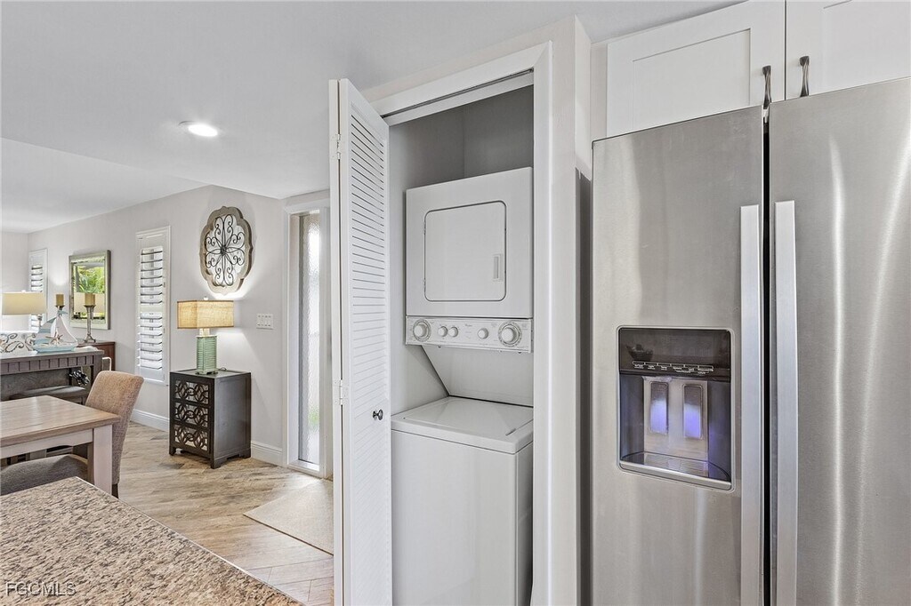 Discover this beautiful turnkey and well maintained 2BR/2BA condo in the desirable SE Cape Coral. The property is situated within walking distance to Jaycee Park,where stunning sunrise views over the river await. This residence offers a perfect blend of comfort and convenience. Ideally located,the property offers easy access to downtown Cape Coral,Fort Myers Beach,and Sanibel,ensuring endless opportunities for leisure,shopping,dining,and entertainment. Upon entering,the light-filled open floor plan welcomes you,with tile flooring sprawling throughout most of the condo. The updated kitchen offers a stylish breakfast bar,decorative backsplash,and modern hardware,ideal for both casual dining and entertaining. The owner's suite is a retreat unto itself,featuring sliders to the expansive screened-in and tiled lanai,the spaciousness of a large walk-in closet,and a beautifully appointed bathroom complete with dual sinks,custom mirrors,and a tiled shower. Additional highlights include a dedicated outside storage closet,and covered parking for your convenience. Residents of this well-maintained community enjoy access to a private pool nestled in a lush tropical setting. Don't miss your chance to experience living in one of Cape Coral's most desirable neighborhoods. Schedule your private showing today and make this exceptional condo yours!