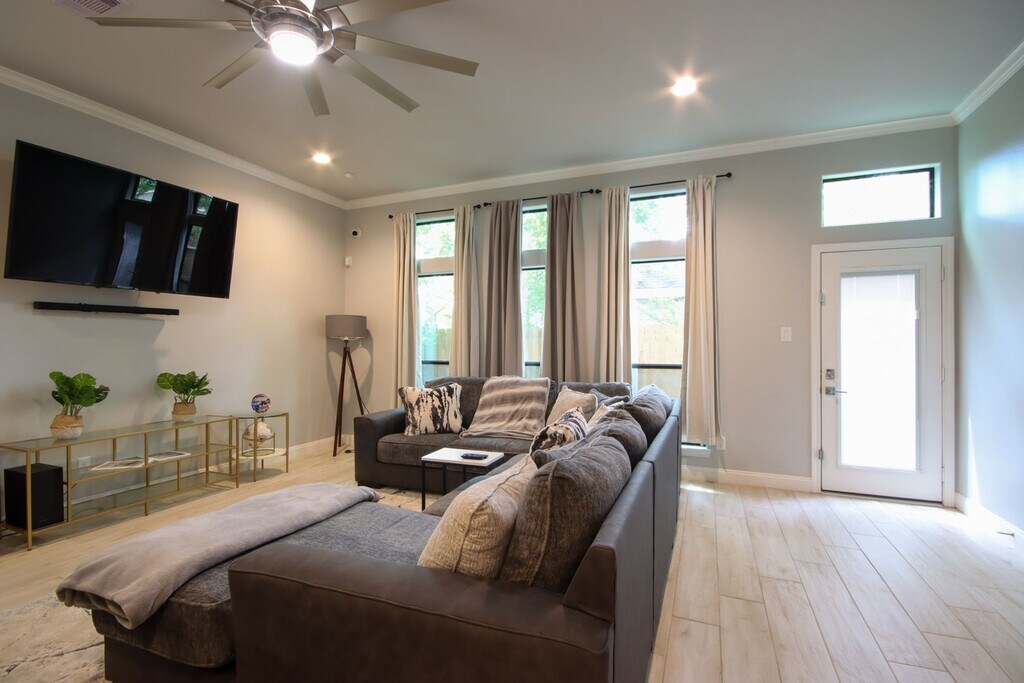 Welcome to Modern Luxury in the Heart of Houston! Discover this stunning newly built 3-bedroom, 2.5-bathroom contemporary home offering 1,893 sq. ft. of open-concept living. Perfectly blending style and functionality, this residence is designed for those who value modern comfort, convenience, and a touch of sophistication. Step inside and be greeted by soaring ceilings, sleek finishes, and abundant natural light. The chef-inspired kitchen comes fully equipped with refrigerator, dishwasher, microwave, garbage disposal, and washer/dryer—everything you need to make daily living effortless. The spacious primary suite offers a private retreat with a spa-like bathroom, while two additional bedrooms provide flexibility for family, guests, or a home office. Upstairs balconies create the perfect spot to enjoy morning coffee or evening sunsets. Key Features: 3 Bedrooms | 2.5 Bathrooms | 1,893 sq. ft. Modern open-concept layout with premium finishes Pet-friendly (cats + all dogs welcome!) Private fenced yard for outdoor living Spacious 2-car garage with sleek contemporary doors Prime location with easy access to downtown, local dining, and major highways Lease Details: Available Move-In: December 31, 2025 Showings Begin: September 1, 2025 Unfurnished Preferred Lease: 12+ months Move-In Incentive: Enjoy free electricity and water for your first month! Security Deposit amount determined by the owner. For each pet, there is a non-refundable move-in fee of $200 and monthly fee of $35. Elevate your living experience with our optional Resident Benefits Package ($45/month). Enjoy peace of mind and extra perks designed to make renting easier and more rewarding: - $100,000 in personal liability protection - $10,000 in personal belongings protection - Credit Booster for on-time payments - build your credit just by paying rent - Accidental damage & lockout reimbursement credits - Plus more exclusive resident perks! Property is syndicated by Nomad as a courtesy to owner. Owner will conduct all correspondence and showings. BEWARE OF SCAMS - Nomad will never ask you to pay any amount prior to applying and all payments are processed through our secure online tenant portal direct to Nomad.