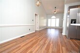 Tucked away in a quiet Raleigh cul-de-sac in an established and serene neighborhood, you'll find 4208 Loon Lane. This ranch style home is available immediately and lives large! An expansive driveway offers plenty of parking space and a stone pathway leads you past lovely flowerbeds and up to a covered front porch. Once inside, you'll be greeted by expanses of luxury plank floors, natural paint colors and a vaulted ceiling that accentuates the large living spaces this home possesses. The foyer opens into a 17x16 family room with a cozy fireplace, triple picture windows and a ceiling fan with light. The family room seamlessly interconnects with a dining space in an arrangement that works perfectly for casual, everyday living and entertaining alike. The dining area showcases a bay window overlooking the backyard as well as a custom chandelier. The adjacent kitchen is open to the living areas and showcases painted gray cabinetry and a suite of gorgeous stainless-steel appliances (including a built-in microwave, a smooth-top oven and a refrigerator with water/ice dispenser on door). The double bowl stainless sink overlooks a shady backyard and an adjacent laundry room includes a high-efficiency front-loading washing machine and dryer for resident's use as well as direct access to the rear deck. 4208 Loon Lane was constructed with a split bedroom" floorplan. The primary bedroom is located on one side of the home, and bedrooms #2/#3 are located on the opposite. This thoughtful design offers the utmost level of privacy and noise isolation. The primary bedroom measures a generous 15x11 and you'll surely appreciate the accent wall, provisions for a wall-mounted TV and double picture windows. You'll also find a walk-in closet and an en-suite bathroom that includes a custom-tiled shower with a glass door and double shampoo shelves as well as dual sinks on an elongated vanity. Bedrooms #2 and #3 are sure to impress with generous dimensions, loads of closet space (bedroom #3 has its own walk-in closet) and easy access to the full hall bathroom with a marble-topped vanity, brushed nickel fixtures, a picture frame mirror and a tub/shower. Before wrapping-up your tour, be sure you visit the backyard! This space has been set up for outdoor living and it includes an elevated 12x10 deck overlooking a wooded buffer, a stone patio/walk, a privacy fence, storage shed and a fire pit. As you're leaving the neighborhood, don't miss the amazing community amenities; all included in your rent! Mallard Crossing includes a sparkling swimming pool, a playground and expansive open spaces for all sorts of activities."