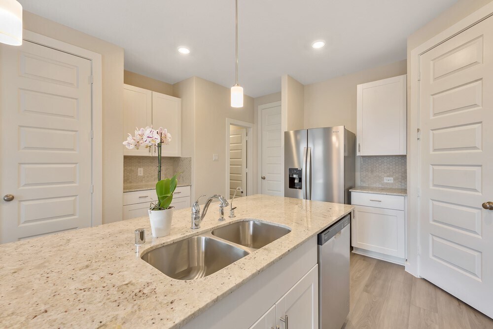 Packed with Premium Upgrades! Features designed for modern living. Epoxy-coated garage flooring for a sleek and durable finish,and garage is equipped with a 220V outlet—perfect for EV charging. Ceiling fans in every bedroom for year-round comfort. Enjoy the convenience of a washer and dryer included in the rent price. Situated on a premium corner lot with extra guest parking. Located in a gated community offering top-tier amenities and a thoughtfully designed layout that blends style with functionality. This two-story home boasts a spacious layout with three bedrooms and two and a half bathrooms,ensuring ample space for relaxation and privacy. The expansive kitchen serves as the focal point of the home,featuring a large curved island and white cabinets,beautifully accented by granite countertops,and modern stainless appliances,refrigerator included. Wine bar/coffee station extension! The living areas are graced with brown tone EVP flooring,adding a touch of sophistication. MLS# 96002141
