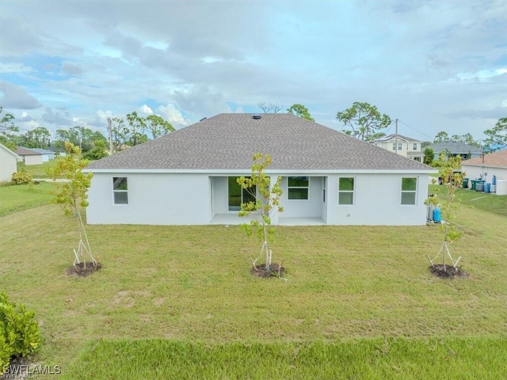 Welcome to this stunning 2023-built home,perfectly situated in the sought-after Gator Circle neighborhood of Northeast Cape Coral. This spacious residence features 4 bedrooms,a versatile den,and 3 modern bathrooms,offering ample space for your family to live comfortably. Nestled on an oversized lot with a western exposure in the rear,this home provides an ideal vantage point to enjoy breathtaking Florida sunsets from your backyard. The peaceful and serene setting borders the Yucca Pens Wildlife Management Area,ensuring a tranquil environment while still being just minutes away from shopping and dining options. Conveniently located near Island Coast High School,Gator Trails Park,and Yellow Fever Creek Preserve Park,this property is perfect for those who value both natural beauty and accessibility to local amenities. Don’t miss the opportunity to make this exceptional house your new home.