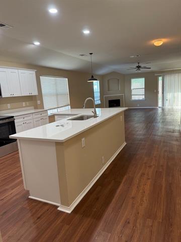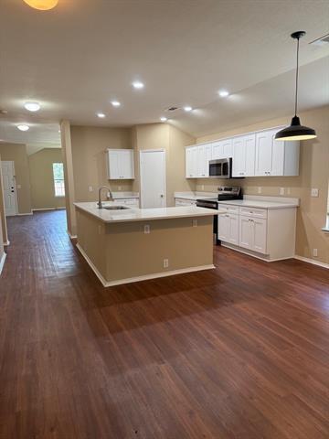 Well-maintained 4-bedroom, 2-bathroom home located in a family-friendly neighborhood within Sherman ISD. This move-in ready residence features an open-concept kitchen that flows seamlessly into a spacious living area, perfect for family gatherings. The renovated kitchen includes elegant quartz countertops and new cabinets, while laminate flooring extends throughout the common areas and bedrooms. Fresh interior paint enhances the home's bright and welcoming atmosphere. The master suite is thoughtfully separated from the other bedrooms and includes dual vanities in both bathrooms. Enjoy a private backyard with no rear neighbors, offering an ideal space for outdoor activities and family entertainment.