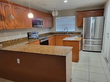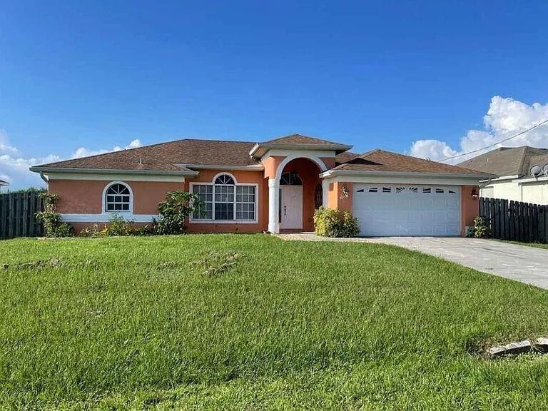 This spacious single-family home offers 3 bedrooms, 2 full bathrooms and approximately 1,725 square feet of living space. The open floor plan features a bright living room and dining area with tile floors throughout. The gourmet kitchen has granite countertops, stainless steel appliances, and ample cabinetry. The primary suite includes a generous walk-in closet and a private bathroom. Enjoy the convenience of an attached two-car garage, in-unit laundry, and central air and heating. A large fenced backyard with a patio provides plenty of space for outdoor entertaining or pets. Located in the heart of Lehigh Acres near shopping, schools and major roadways, this home is available for immediate move-in. Pet-friendly (small and large dogs and cats welcomed) with a one-year lease. Contact us today to schedule a viewing! Landscaping maintenance is included in the rent for your convenience.