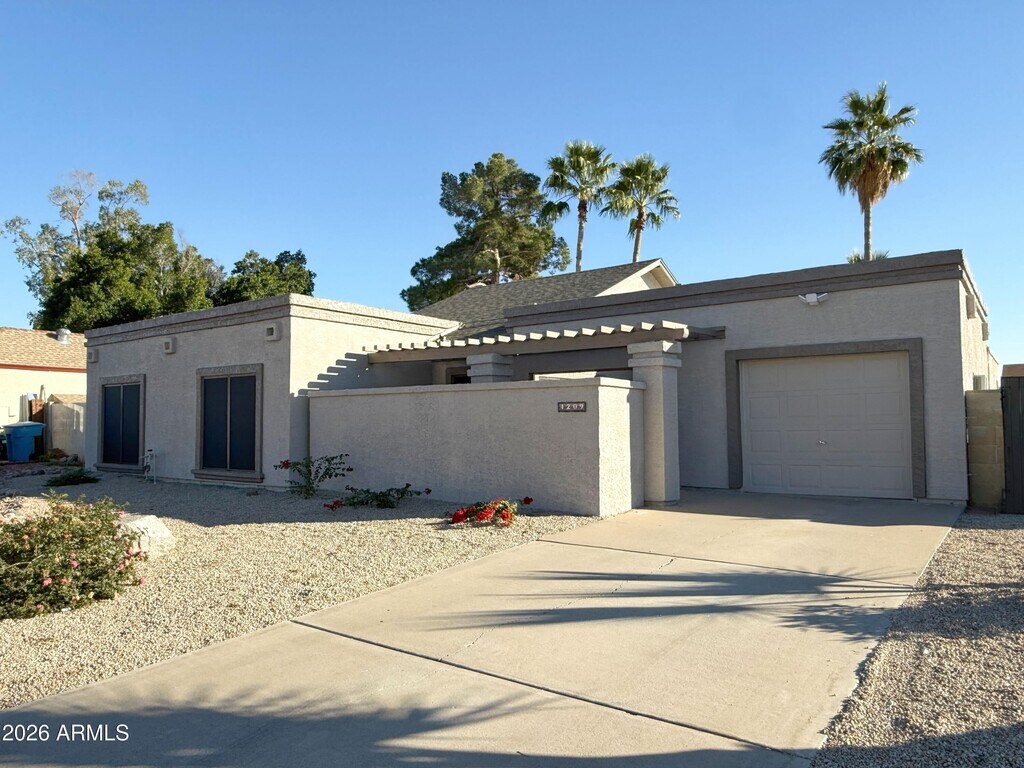 No Application Fees! Spacious and updated single level 3 bedroom plus den plus game room Glendale home located in the San Gabriel community. This well designed home features tile flooring throughout with no carpeting,vaulted ceilings,two tone neutral paint,ceiling fans in each room,2'' window blinds,and oversized windows that provide excellent natural light. The inviting living room flows into a large den and dining area,creating flexible living space ideal for work,entertainment,or relaxation. The upgraded kitchen offers granite countertops and backsplash,soft close cabinetry,a large island with breakfast bar,separate dining area,and stainless steel appliances. The split floor plan includes a spacious primary suite with walk-in closet,double sink vanity,and step-in shower. Additional highlights include a bonus game room,private front courtyard entry,washing machine and dryer included,and a one car garage providing parking and storage. The oversized backyard features a covered patio,synthetic grass area,fenced side yard,and easy to maintain landscaping. San Gabriel is a well established Glendale neighborhood with nearby parks,greenbelts,and walking paths. Conveniently located near shopping,dining,and entertainment along Union Hills Drive and Bell Road,with quick access to Loop 101 for commuting throughout the Valley. Close to schools,golf courses,and outdoor recreation. All Denali Real Estate residents are automatically enrolled in the Resident Benefits Package (RBP) for $55.00/month which includes Renter's Liability Insurance,Credit Building to help boost the resident's credit scores with timely rent payments,up to $1M Identity Theft Protection,HVAC air filter delivery (for applicable properties),our best-in-class resident rewards program,and much more!