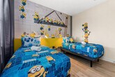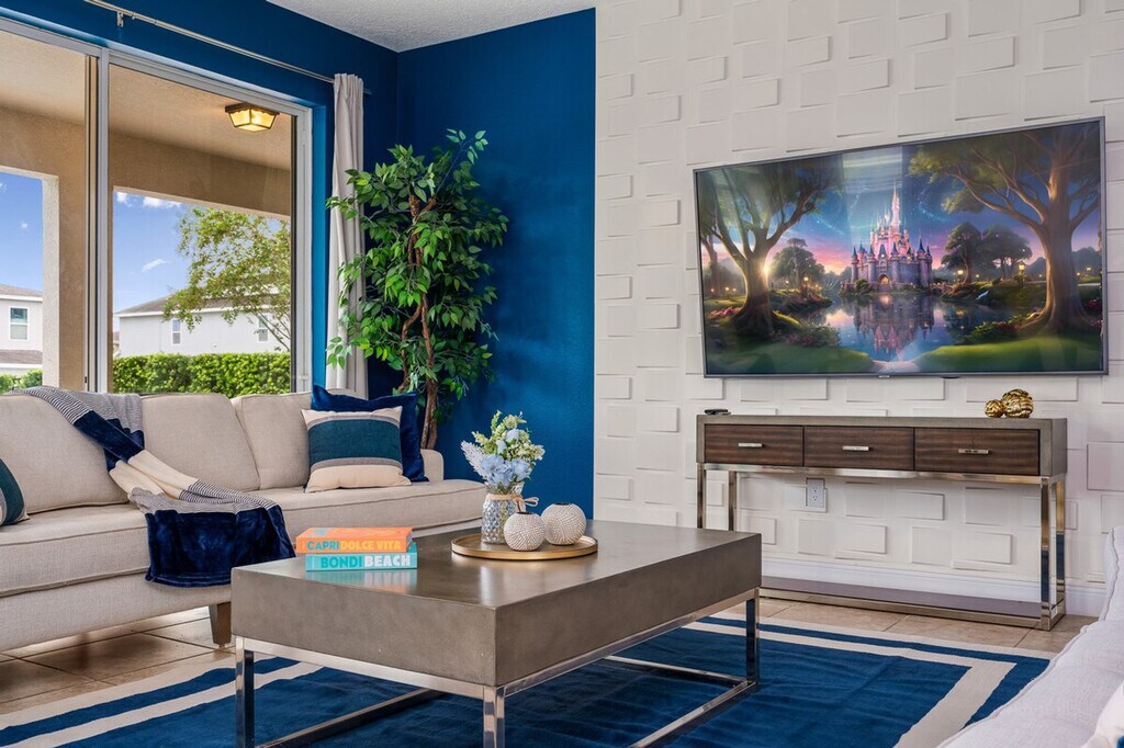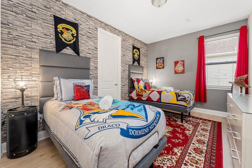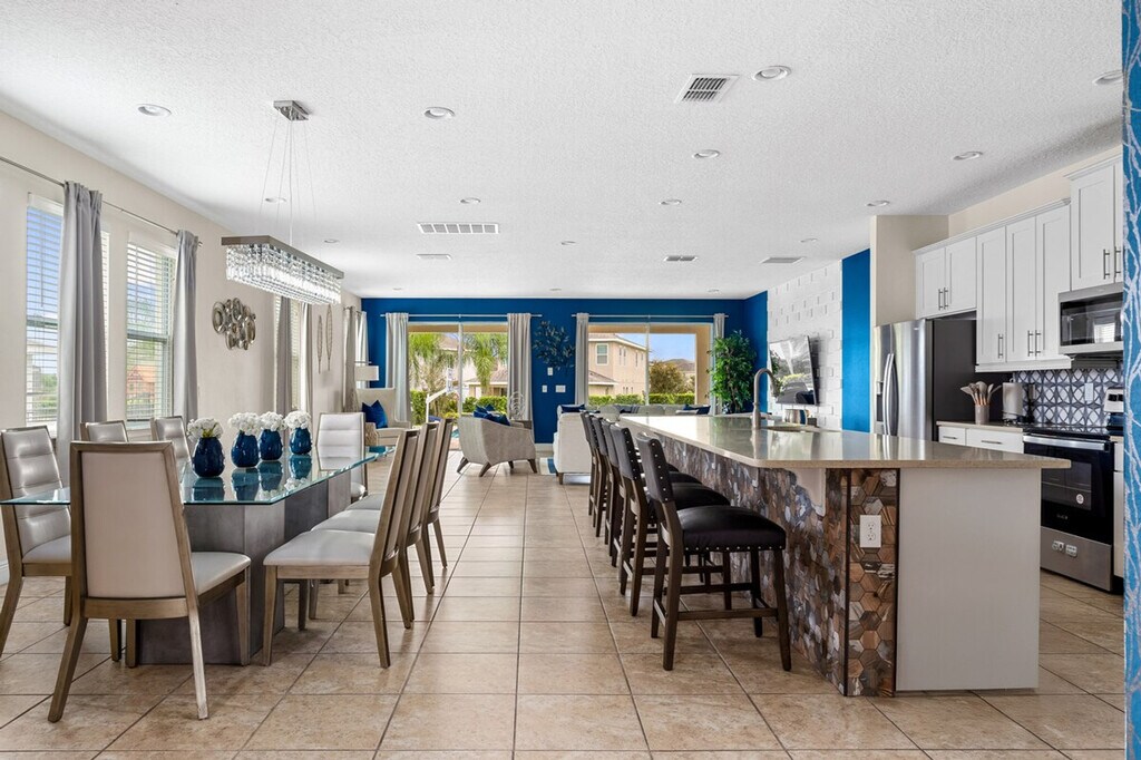 The advertised rate of $12,522/month is the lowest available price, based on a 30 day(s) stay with a move-in date of August 21, 2026. Rates vary depending on the duration of stay, season, and other parameters. For exact pricing and additional pricing components, please visit our website and enter your desired move-in and move-out dates. The rate is applicable when billed upfront; it can be higher if billed in multiple payments. Experience unparalleled luxury and feel at home in this stunning 9-bedroom, 8.5-bathroom home located in the exclusive Encore community, just minutes from Disney. This enchanting retreat promises to create unforgettable memories. It sleeps up to 18 guests and features 7 luxurious suites and 2 charming themed rooms. Enjoy movie nights in the private home theater with seating for 5 and double surround sound. The gourmet kitchen is fully equipped with modern appliances, including 2 refrigerator/freezers, 2 dishwashers, a microwave, toaster, blender, coffee machine, and all essential cookware. The comfortable living room includes a 65" smart TV and plenty of seating. There is an elegant dining room that comfortably seats up to 12 guests and a breakfast nook with additional seating for 8. Other features include keyless entry, an on-site washer and dryer, hair dryers, fresh towels and linens, and starter amenities like paper towels, toilet paper, soap, shampoo, body wash, laundry detergent, dish soap, and dishwasher pods. Enjoy the private heated pool and spa, with pool heat available for $35 per day. Up to 2 dogs are welcome for a $150 pet fee. Conveniently located near Walmart (4 miles) and Publix (0.6 miles), this home is approximately 90 minutes away from Clearwater Beach and Daytona Beach and just 70 minutes away from Kennedy Space Center. Parties are strictly prohibited, and a $1,500 penalty fee will be charged for any violations or reported parties. Guests are responsible for refilling the BBQ propane tank during their stay. Bedroom 1, located on the first floor, features a king bed, en-suite bathroom with a relaxing jacuzzi tub, and direct access to the pool. Bedroom 2, also on the first floor, includes a queen bed, 55" smart TV, and a spacious walk-in closet. Bedroom 3, located on the second floor, features 2 twin beds, a Minions-themed decor, a 32" smart TV, and a large closet. Bedroom 4, located on the second floor, includes 2 twin beds, a Harry Potter-themed design, a 32" smart TV, and a spacious closet. Bedroom 5, located on the second floor, offers 2 twin beds, a 55" smart TV, and a walk-in closet. Bedrooms 6 and 7, located on the second floor, each have a queen bed, a 55" smart TV, and a walk-in closet. Bedrooms 8 and 9, located on the second floor, each feature a king bed, a 55" smart TV, and a walk-in closet. [SI]