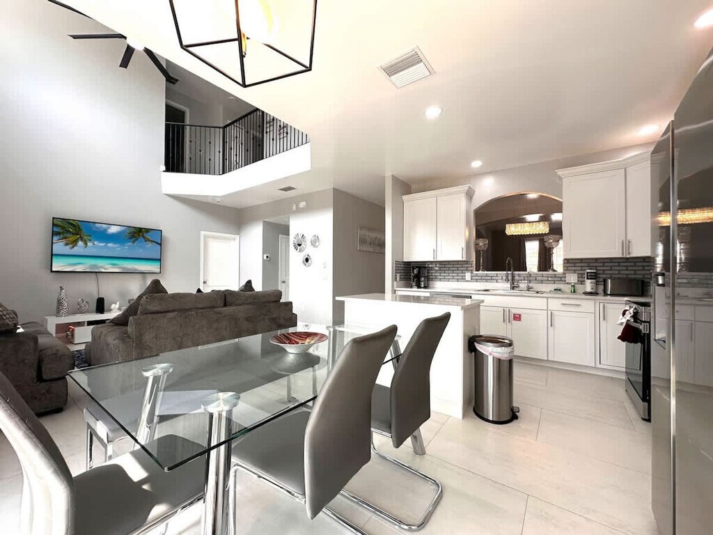 Welcome to your dream vacation getaway! This stunning and spacious two-story, 6-bedroom, 4.5-bathroom home is located in the gated and secure Aviana Resort community in Davenport, Florida. With room for up to 14 guests, a private screened pool, and an awesome game room with a pool table and PlayStation, this home is perfect for large families or groups looking to stay just minutes from the magic of Walt Disney World. The home includes a dedicated game room equipped with a pool table and PlayStation, offering the perfect space to unwind after a day at the parks. It features a two-story layout for added privacy and space, two spacious living areas with comfortable seating and smart TVs, and smart TVs in all bedrooms so everyone can stream their favorite shows. The fully stocked kitchen with modern appliances, cookware, and ample prep space, along with a large dining area, is perfect for family meals or group gatherings. Enjoy high-speed Wi-Fi and central air conditioning, a private screened-in pool and patio ideal for lounging or outdoor dining, and a washer and dryer available for guest use. The driveway accommodates parking for multiple vehicles. Optional services available for an extra fee include pool heating, recommended in colder months, BBQ grill rental perfect for outdoor cookouts, and theme park ticket sales to all major attractions. Nestled in a quiet, gated community surrounded by lush natural landscapes and conservation areas, Aviana Resort in Davenport offers a serene and family-friendly escape just 20–25 minutes from Walt Disney World. Located just off US-17/92 and near I-4, Aviana is conveniently close to Disney, golf courses, dining, shopping, and Central Florida’s top destinations—while offering a peaceful retreat away from the crowds. Quiet hours are between 10:00 PM and 6:00 AM. All properties are strictly non-smoking, non-vaping, and non-e-cigarette in or near the property. Failure to comply with this will result in the removal of the guest from the property without recompense or refund and the loss of the security deposit or a charge to the guest’s credit card if no security deposit is in place to cover the deep clean costs. The minimum fine for smoking is $500.00. Pets are not permitted in any property at any time. If it is discovered that a pet has been in a home, there is an automatic charge of $450.00 to cover the cost of professionally cleaning all carpets and upholstery. There is an additional charge should a pest control company's services be required. You will also be asked to leave the home, forfeiting your stay and any payments or deposits made. Check-in time is 4:00 PM and check-out is before 10:00 AM. A late check-out can only be arranged for an additional fee if the home does not have another guest’s arrival scheduled. This option must be arranged in advance and cannot be added on the day of departure. Doors must be locked and the alarm (if applicable) must be set. If it is found that the guest has not departed the property on the date of departure, at the due time, then the guest will pay a penalty charge of one day rental. [SI]