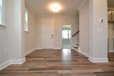 If you've been searching for a pristine, luxury home in a stellar Wake Forest locale; look no further! 1521 Canyon Spring Trail is located in the coveted Rosedale neighborhood, available immediately. Rosedale is a beautiful planned unit neighborhood situated in an amazingly-convenient location just minutes from the historic and vibrant downtown Wake Forest district, I-540/US-1, local schools, retail, parks and more. When arriving, you'll appreciate that all of the garages on this street are accessible via rear alleys, so the front facades of these homes aren't cluttered. Your guests can park right in front of your home and be welcomed at the expansive, covered front porch that offers ample space for outdoor furniture. You can also enjoy quiet evening strolls along uninterrupted sidewalks. The front door opens into a dramatic living space offering tall ceilings and beautiful luxury plank floors as far as the eye can see. A wide hallway leads towards the living spaces in the rear half of the home where you'll find yourself in a beautiful family room featuring multiple picture windows and recessed LED perimeter lighting. In today's popular open-concept trend, the kitchen, dining area and family room are all interconnected and you can seamlessly flow from space to space. This arrangement works perfectly for casual living and entertaining alike. Adjacent to the family room is a chef's kitchen that's truly a sight to behold! The centerpiece of the kitchen is undoubtedly its massive quartz-topped island that includes a breakfast bar, a double-bowl stainless steel undermount sink, modern gray cabinetry and a dishwasher. Beyond the island you'll find additional gorgeous grey cabinetry accentuated by crown molding and a subway-tiled backsplash that stretches all the way to the ceiling. Soft close drawers throughout make using this space feel that much more luxurious! A sleek appliance package consists of a wall oven, wall microwave, a gas cooktop and a commercial-style hood vent, and refrigerator. Wrapping up the living space is a perfectly-proportioned dining area with recessed LED lighting as well as double windows and a door that leads-out to a covered side porch; instantly expanding your living space when the occasion arises! You'll also appreciate the direct access to the attached 2 car garage as well as a desirable drop-down" area with shoe cubbies, hat/backpack hooks and a bench that makes it easier to deal with putting on your shoes in the morning. The first floor also includes a spacious bedroom with double windows, a large closet and an adjacent full bathroom. If a 4th bedroom is not needed, this space could also alternatively be put to perfect use as a home office, media room, a dedicated exercise space; the possibilities are truly endless! The top floor is home to three more bedrooms as well as a conveniently-located laundry room with a utility sink, ample shelving space, and a washer/dryer for resident's use. Chores just got a bit easier; no more hauling laundry up and down the stairs! The primary bedroom at 521 Canyon Spring Trail is sure to impress with a tray ceiling, double windows and an expansive walk-in closet. The en-suite bathroom showcases plank tiled floors, an elevated quartz-topped vanity with dual rectangular undermount sinks, a private water closet, a linen closet and a fully-tiled walk-in shower with a seat and glass enclosure. Bedrooms #3 and #4 are both generously-proportioned and offer lovely natural light, double wall closets and easy access to a full hall bathroom with tiled floors, a quartz-topped vanity and a tub/shower."