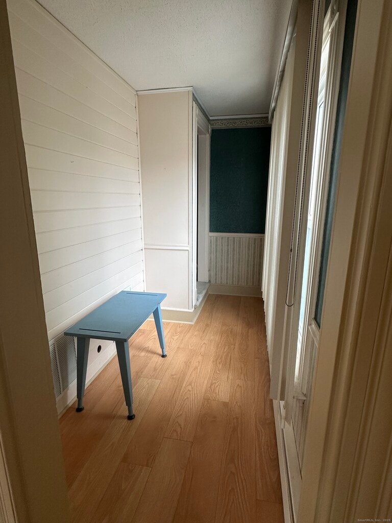 Call for Availability - This is a two-family home with a rental available on the 2nd floor. Located in a great section of Yalesville convenient to everything. This historic, updated colonial offers bright large rooms with detailed woodwork and stained-glass windows in a large foyer. The is large and bright with big, beautiful windows for sunlight. The unit has a kitchen dining room, living room, bedroom with a Walkin closet, hardwood floors a remodeled large bath. The best part is a large room on the third level with built-ins and finished to be used an office den of primary bedroom or studio. The home has updated utilities including, central air which will be great in minimizing utility costs. Utilities run approx. $200 per month; Rent is $1800 plus one month's security of $1800 immediate occupancy available. Also, there is a two-car garage that the has one side available for an additional $200 per month, if not needed, there is parking for 2 cars in a private driveway. MLS# 24140742
