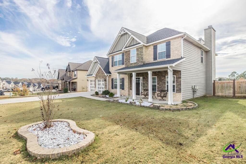 Welcome to this stunning 5BR/4BA, 3,324 sq. ft. home that boasts a beautiful interior with an In Law Suite on the main floor complete with a full bath. The open kitchen concept features stainless steel appliances, a huge granite island, and countertops and two pantries. The luxurious owner suite offers a separate garden tub, granite double sink vanities, and a spacious walk-in closet. The great room includes a tiled wood-burning fireplace, perfect for cozy nights in. Additional features include a mudroom with cubbies, an attached 2 car garage, and an outdoor fireplace on the 12'x16' game day patio. This home is a must-see for anyone looking for a perfect blend of comfort and style. Don't miss out on this amazing property!